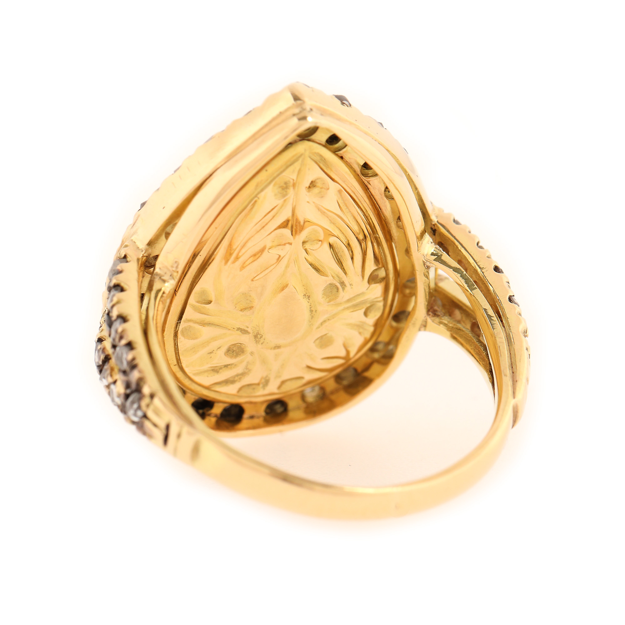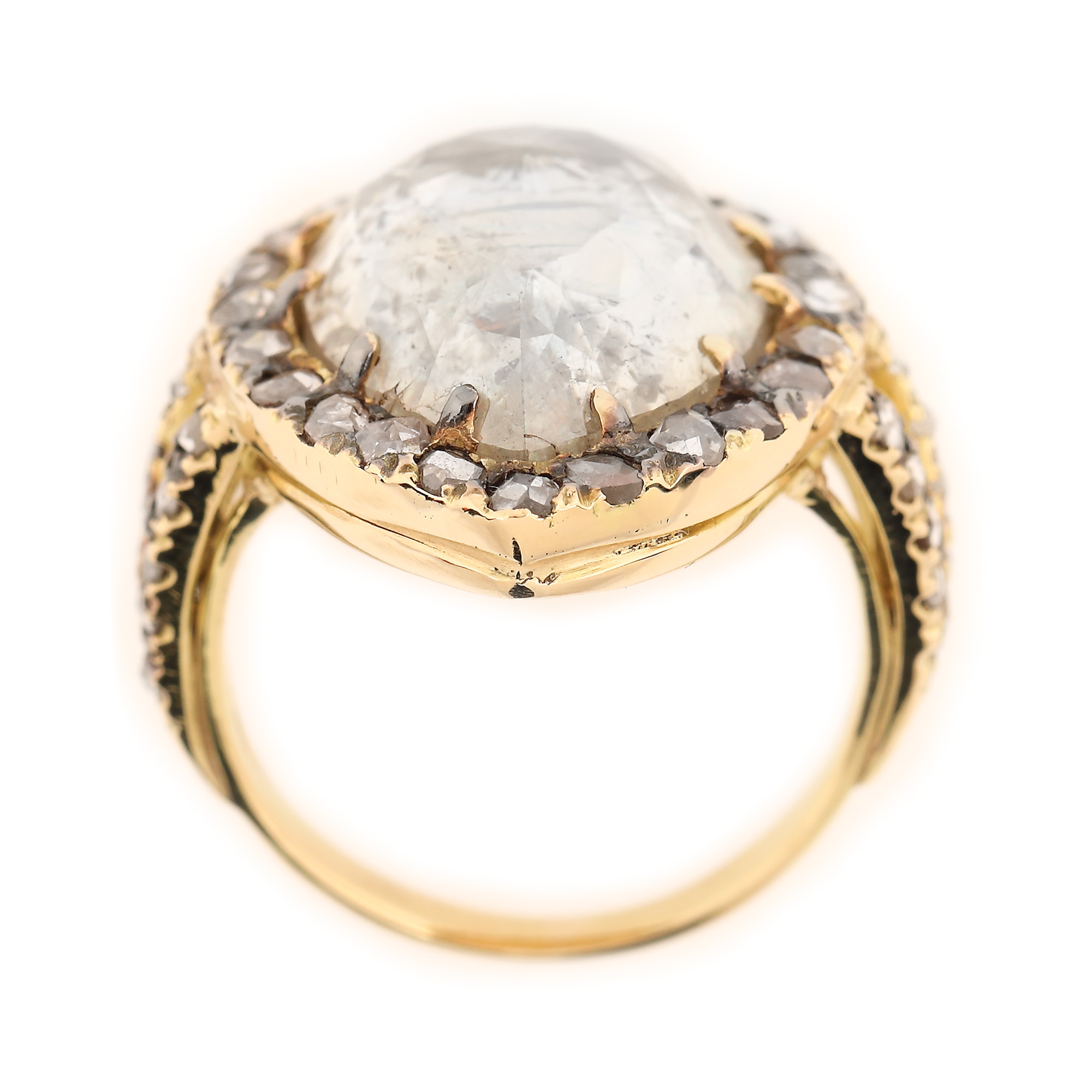 31. Inel din aur, decorat central cu rar diamant cca. 15,90 ct. anturat de diamante