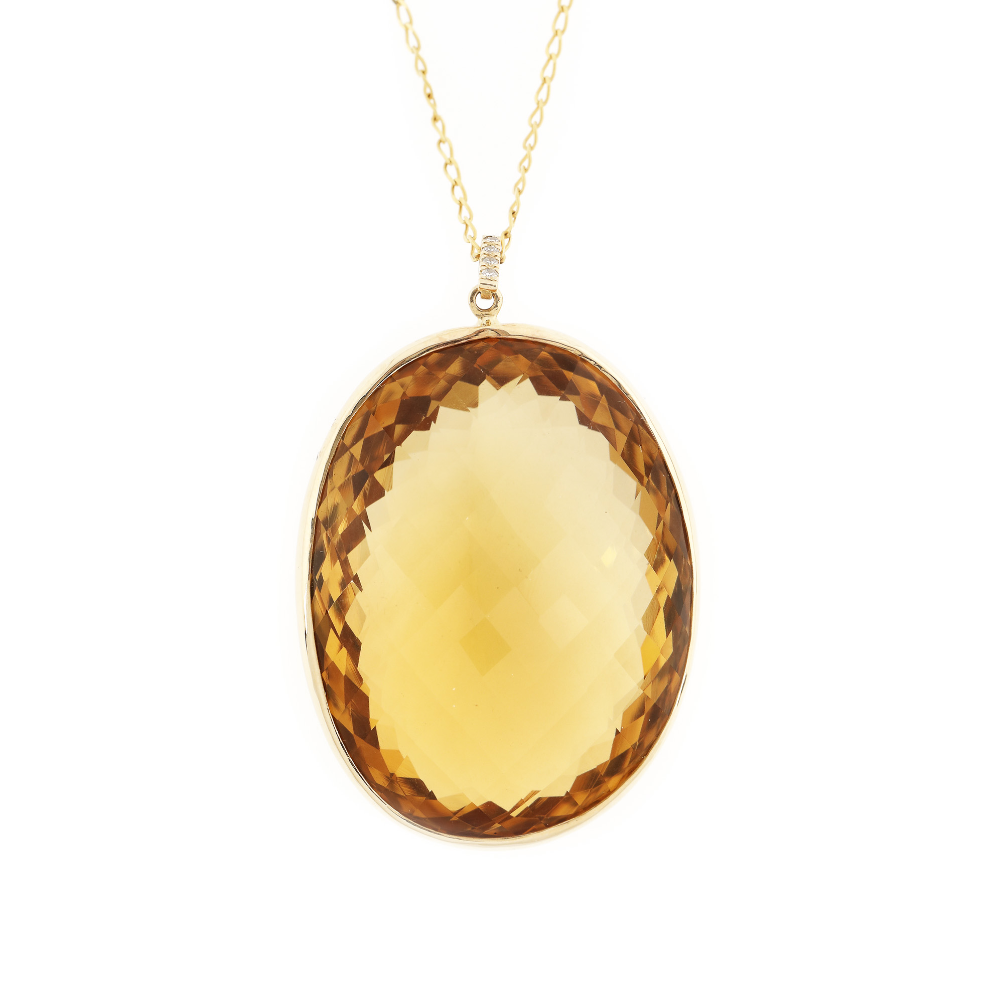 38. Lanț cu pandantiv din aur, decorat cu citrin și diamante