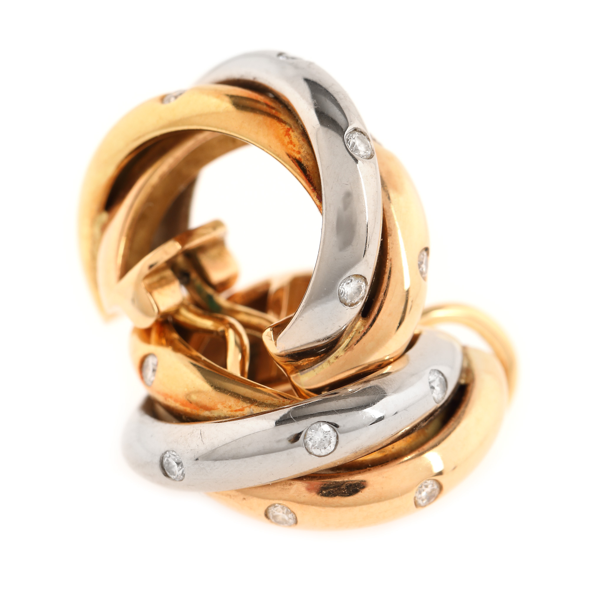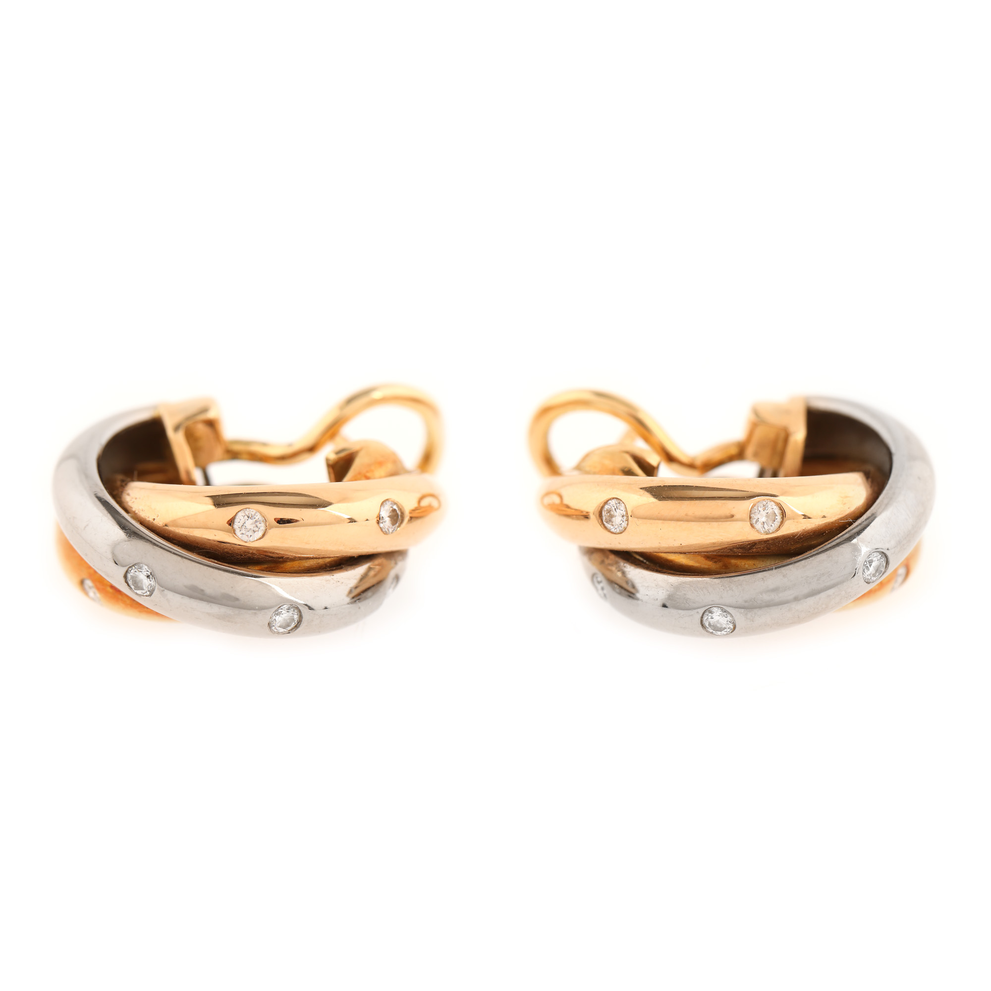 40. Pereche de cercei Cartier, din aur în trei culori, decorată cu diamante