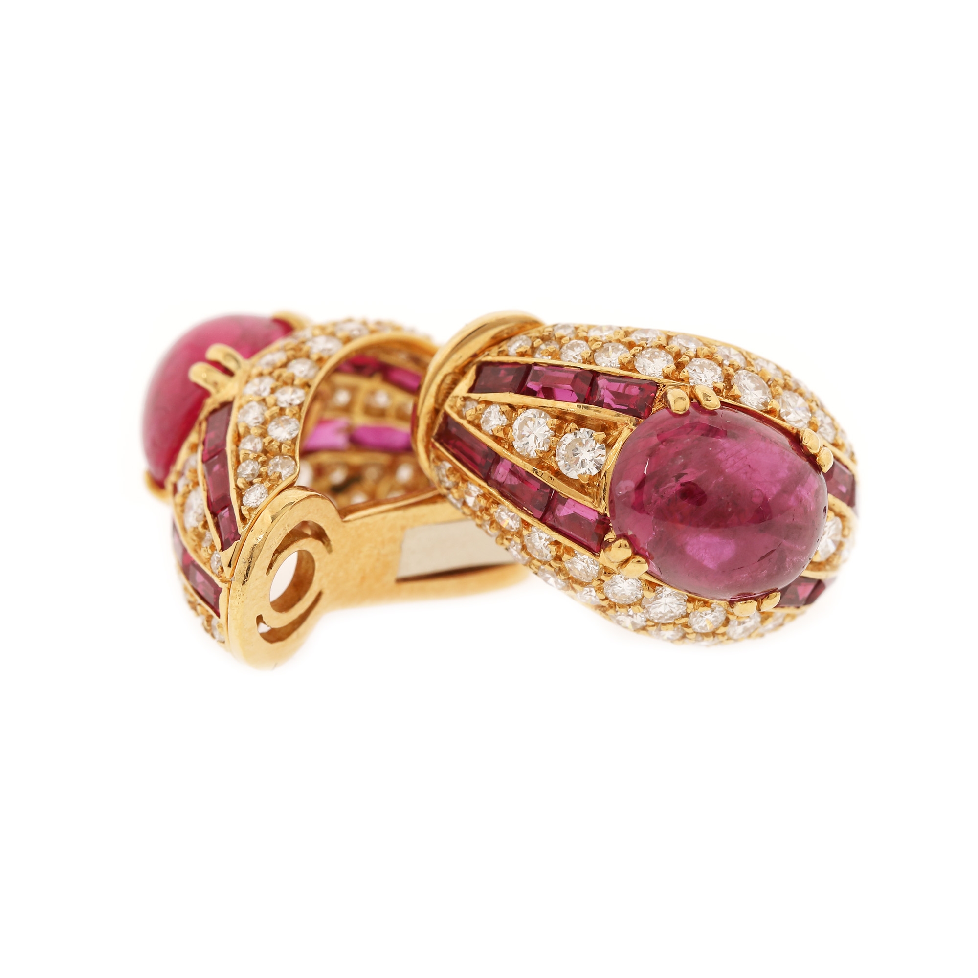 5. Pereche de cercei din aur, decorată cu rubine și diamante