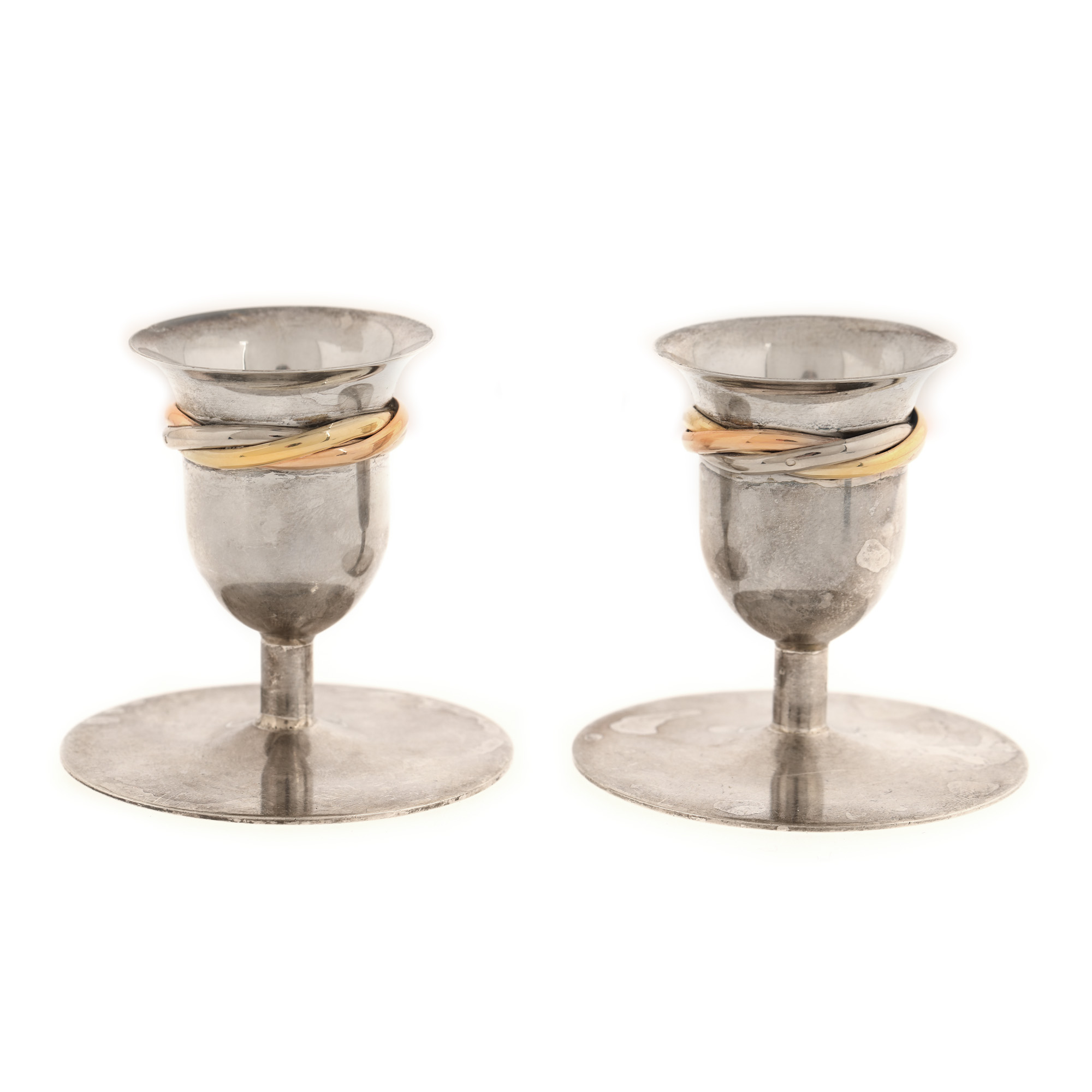 41. Pereche de sfeșnice Cartier Trinity, din argint și aur în trei culori [A doua jumătate a sec. XX]