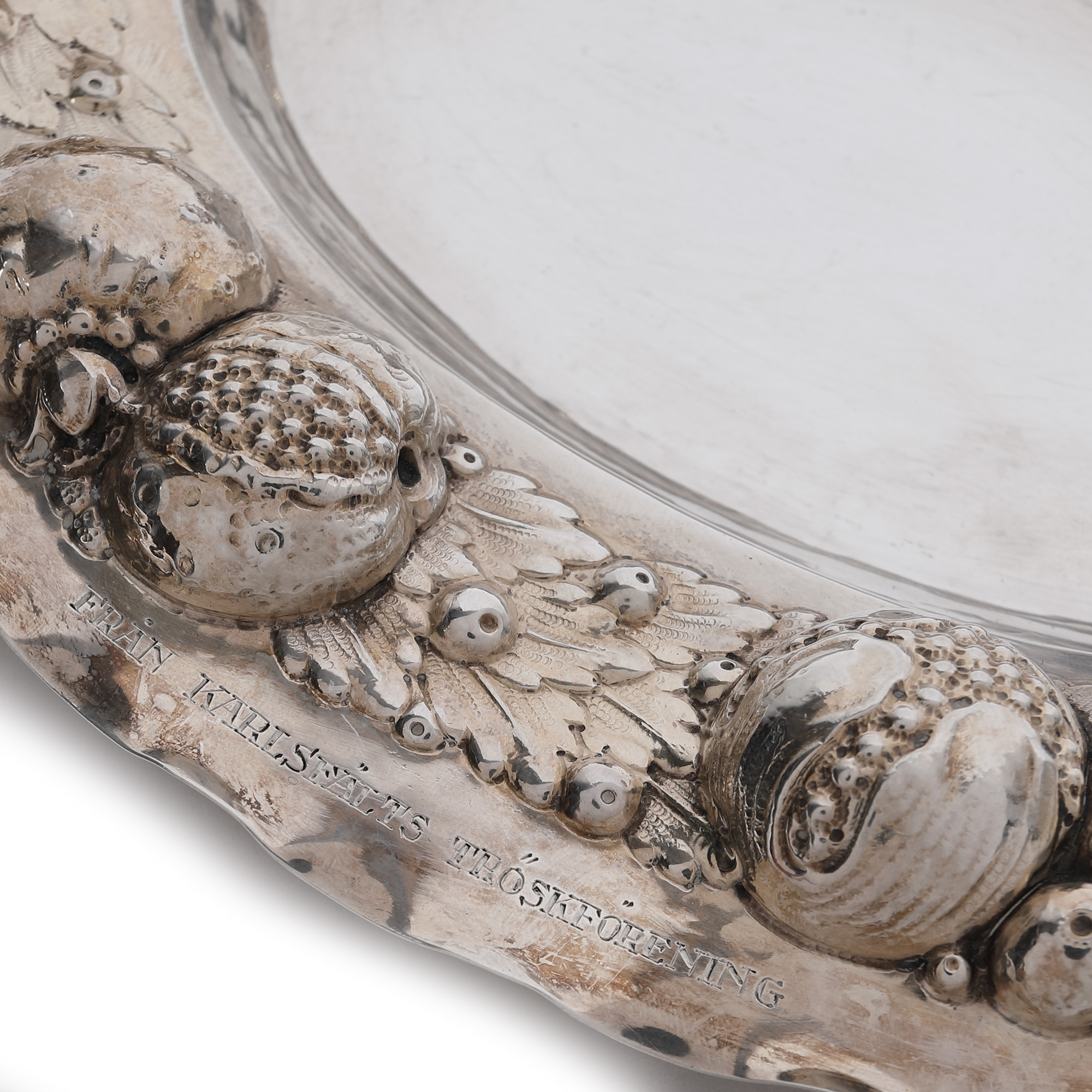 43. Platou din argint, decorat în repoussé cu fructe, meșter Carl Hoff, 1928