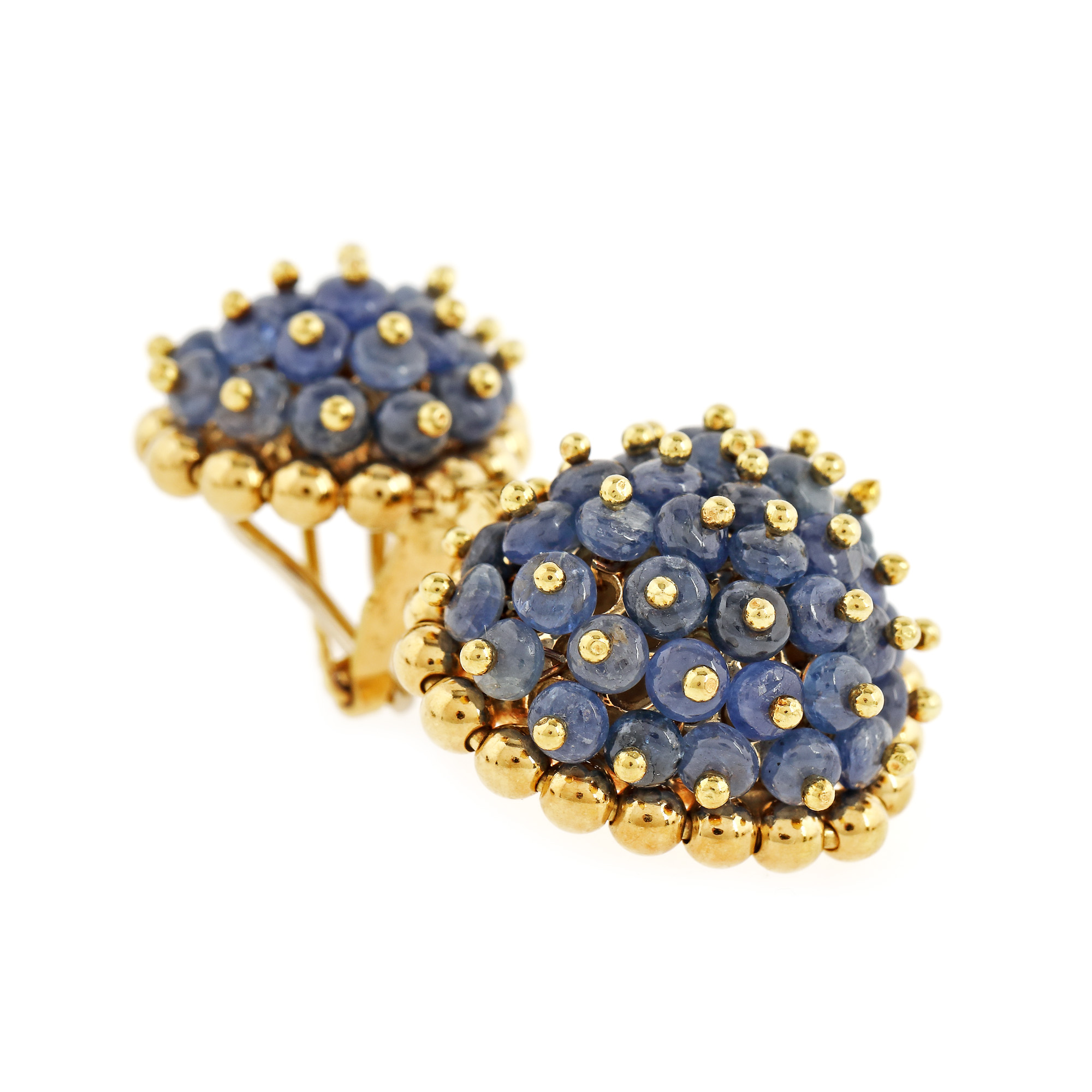 26. Set din aur, format din pereche de cercei și pandantiv, decorat cu safire