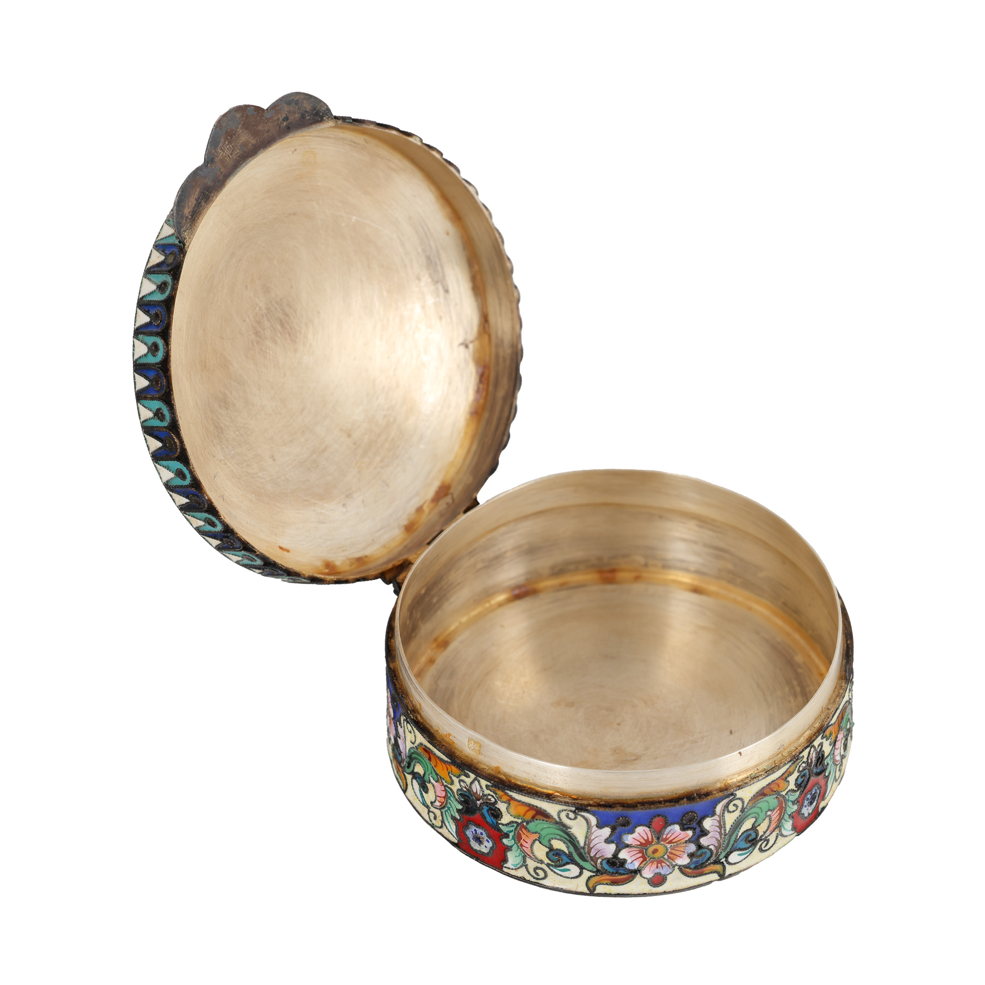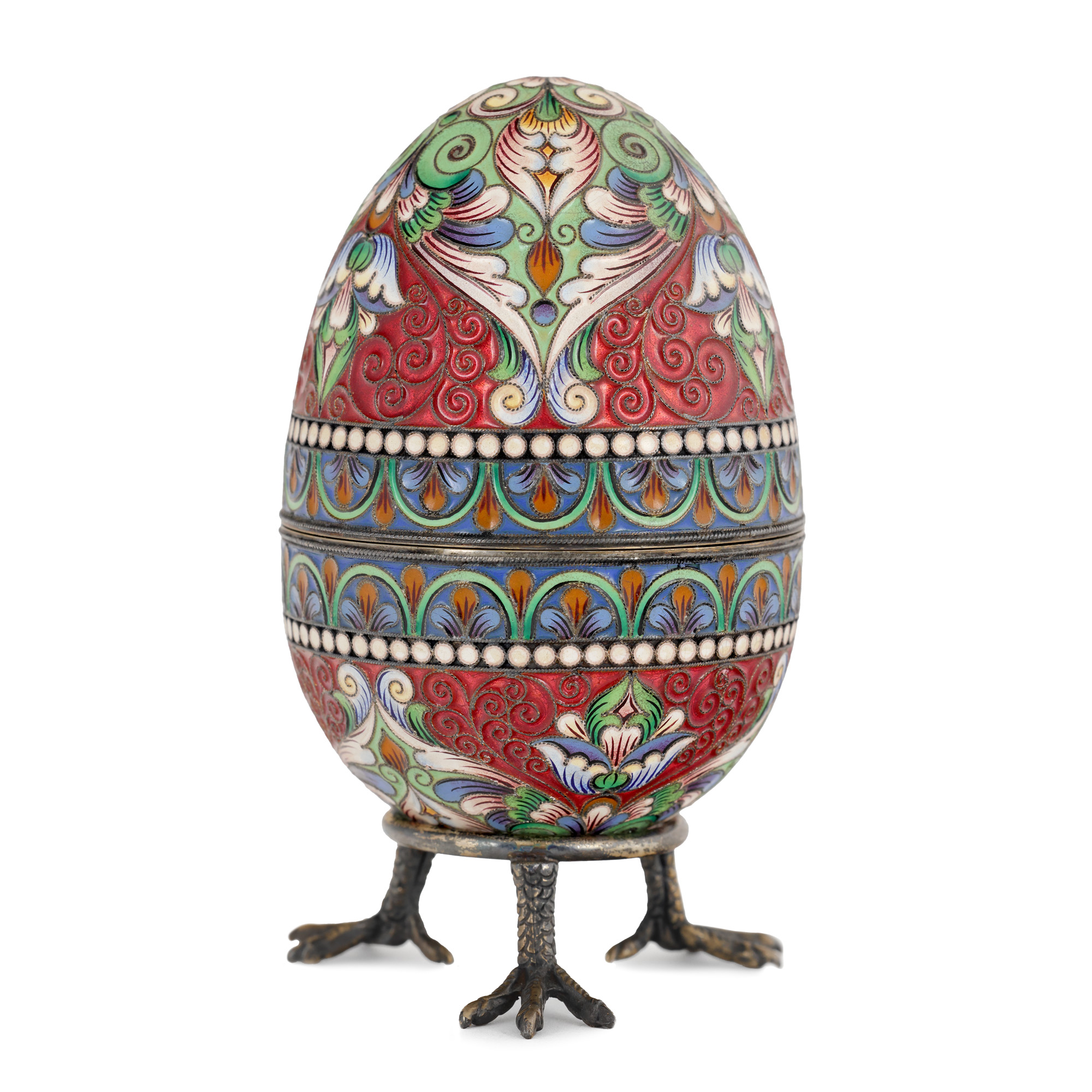 12. Casetă din argint, sub formă de ou, decorată cu email în manieră rusească [1960]