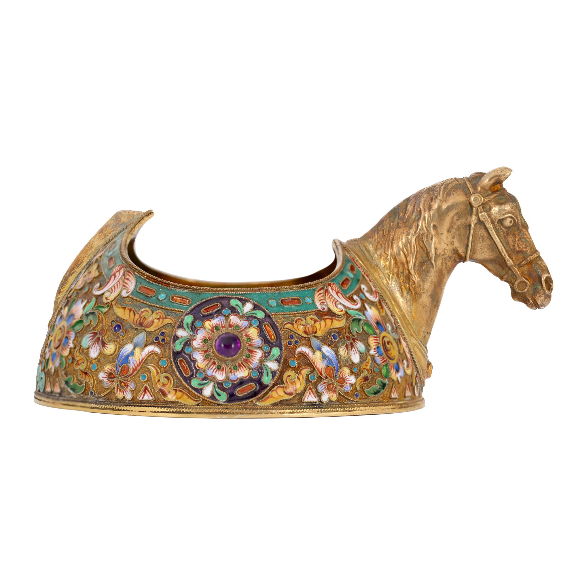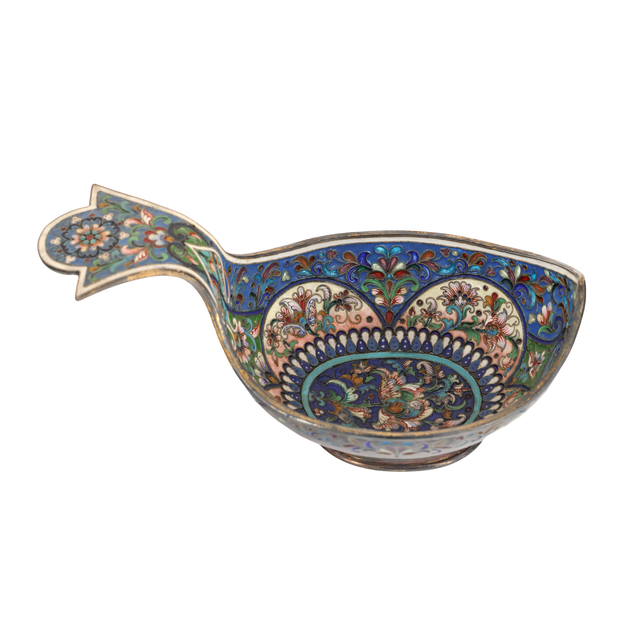13. Kovsh din argint aurit, decorat cu email în manieră rusească