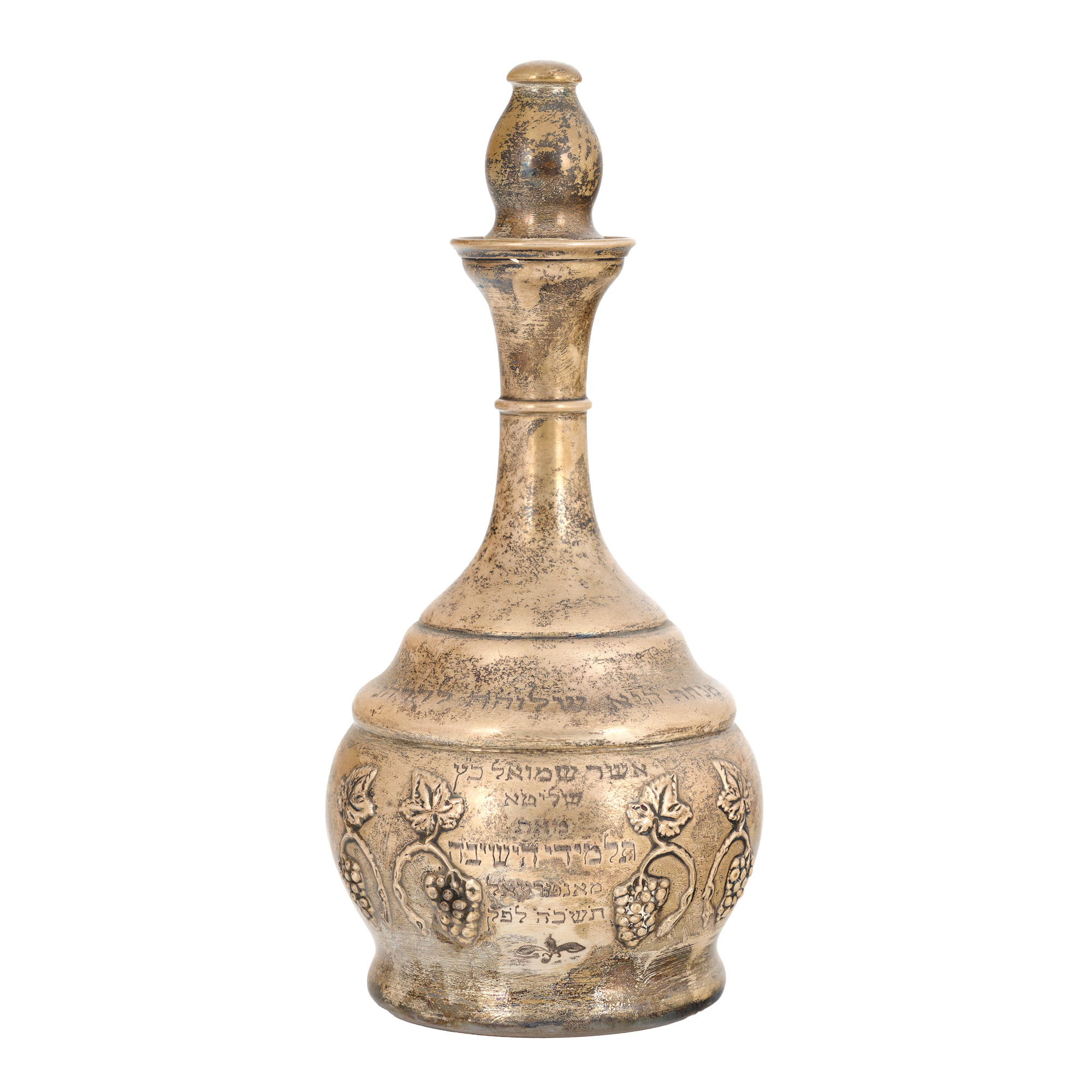 3. Decantor din argint, decorat cu struguri și o inscripție în ebraică, cca. 1940