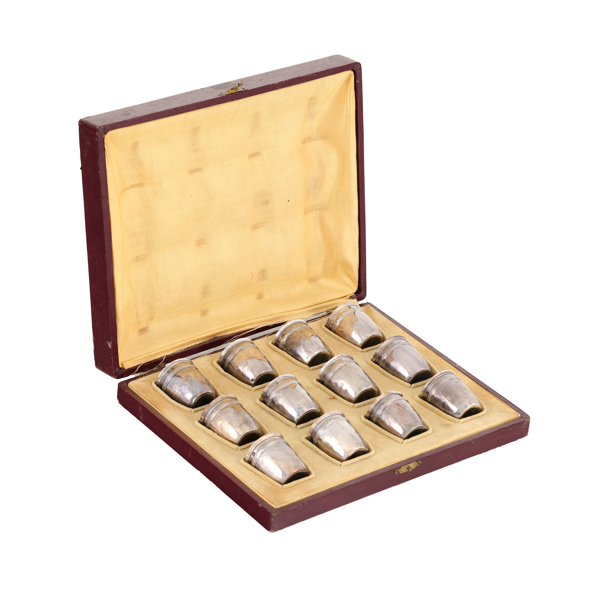 32. Set format din 12 pahare din argint, cca. 1900, în cutia originală