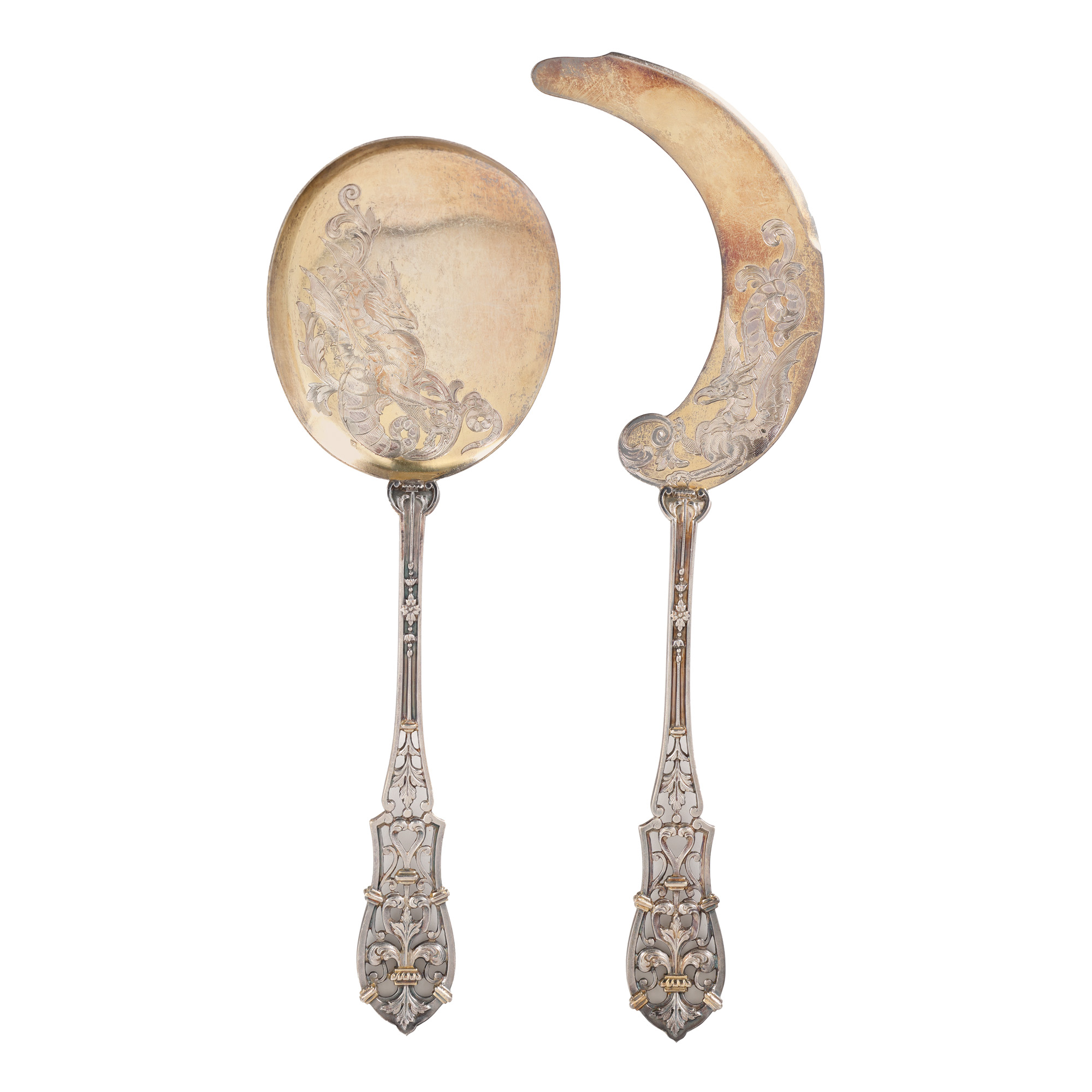 25. Set pentru servirea tortului, din argint, decorat cu dragoni, cca. 1920