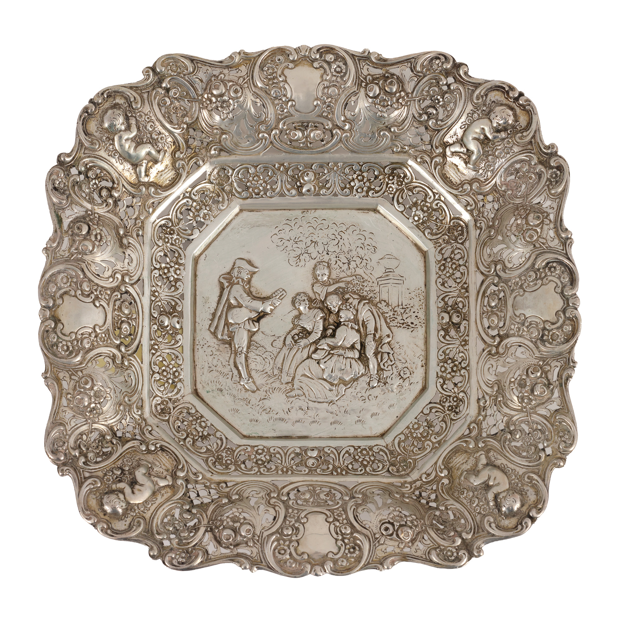 35. Vide-poche din argint, decorat cu scenă galantă, cca. 1820