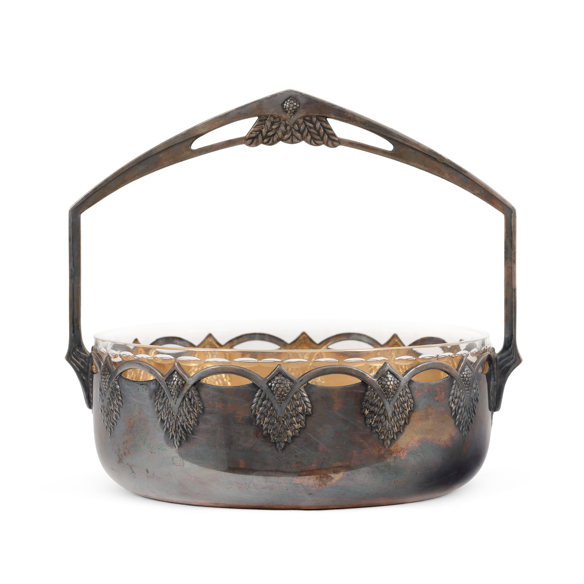 46. Bombonieră argintată Art Nouveau, din cristal gravat, decorată cu friză vegetală