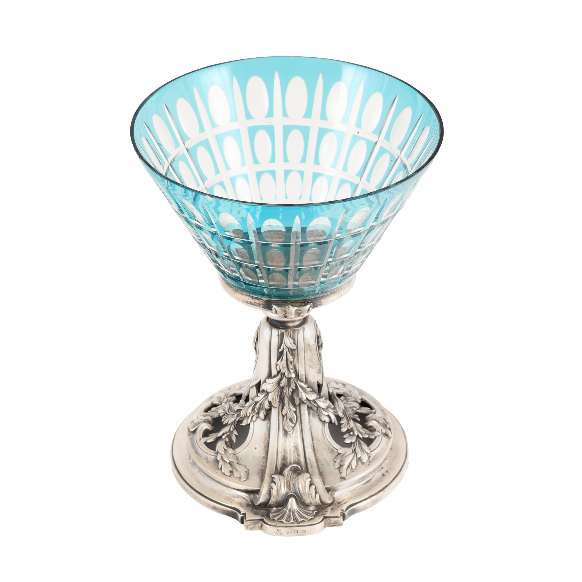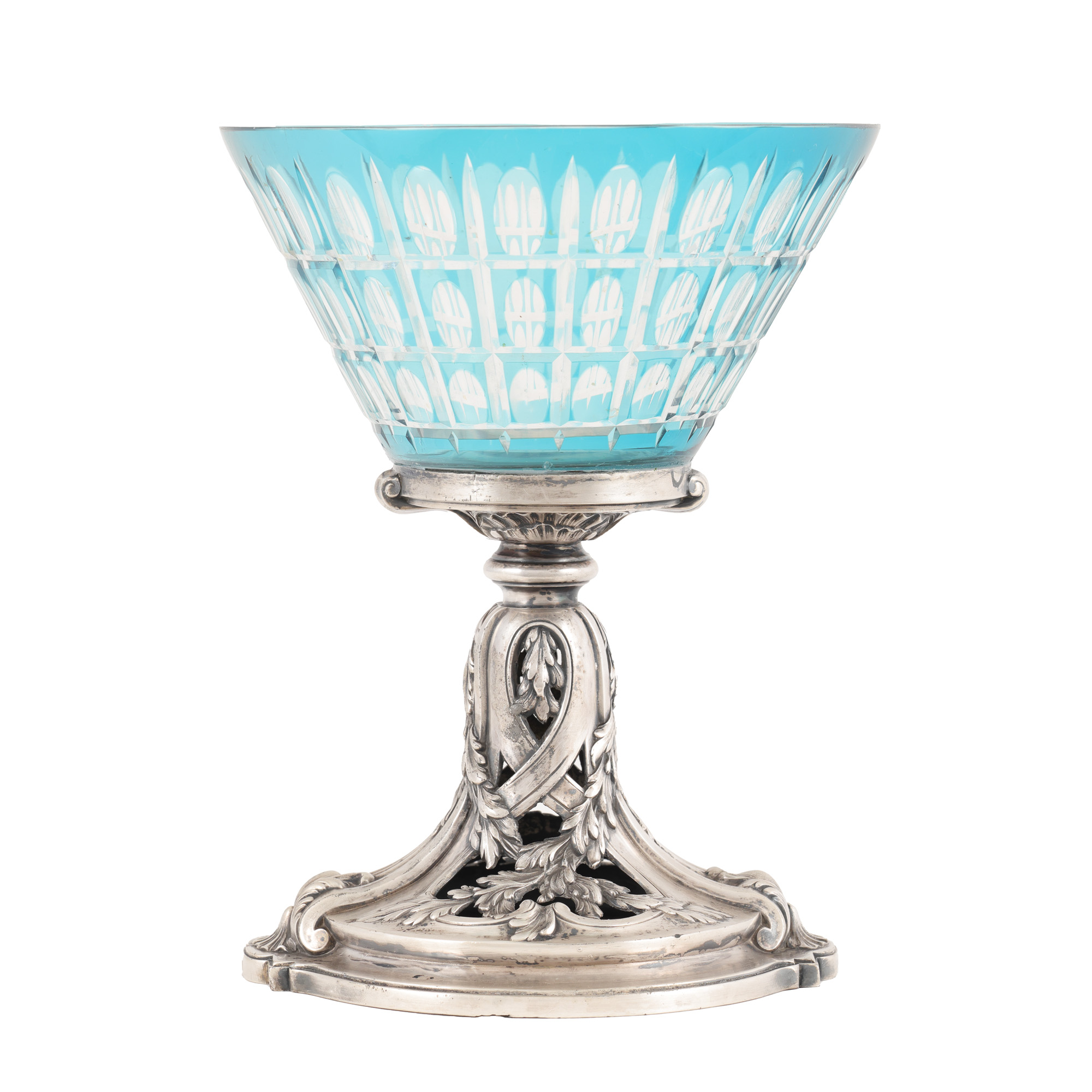 41. Fructieră Christofle, din cristal și montură argintată, decorată cu elemente florale, cca. 1908