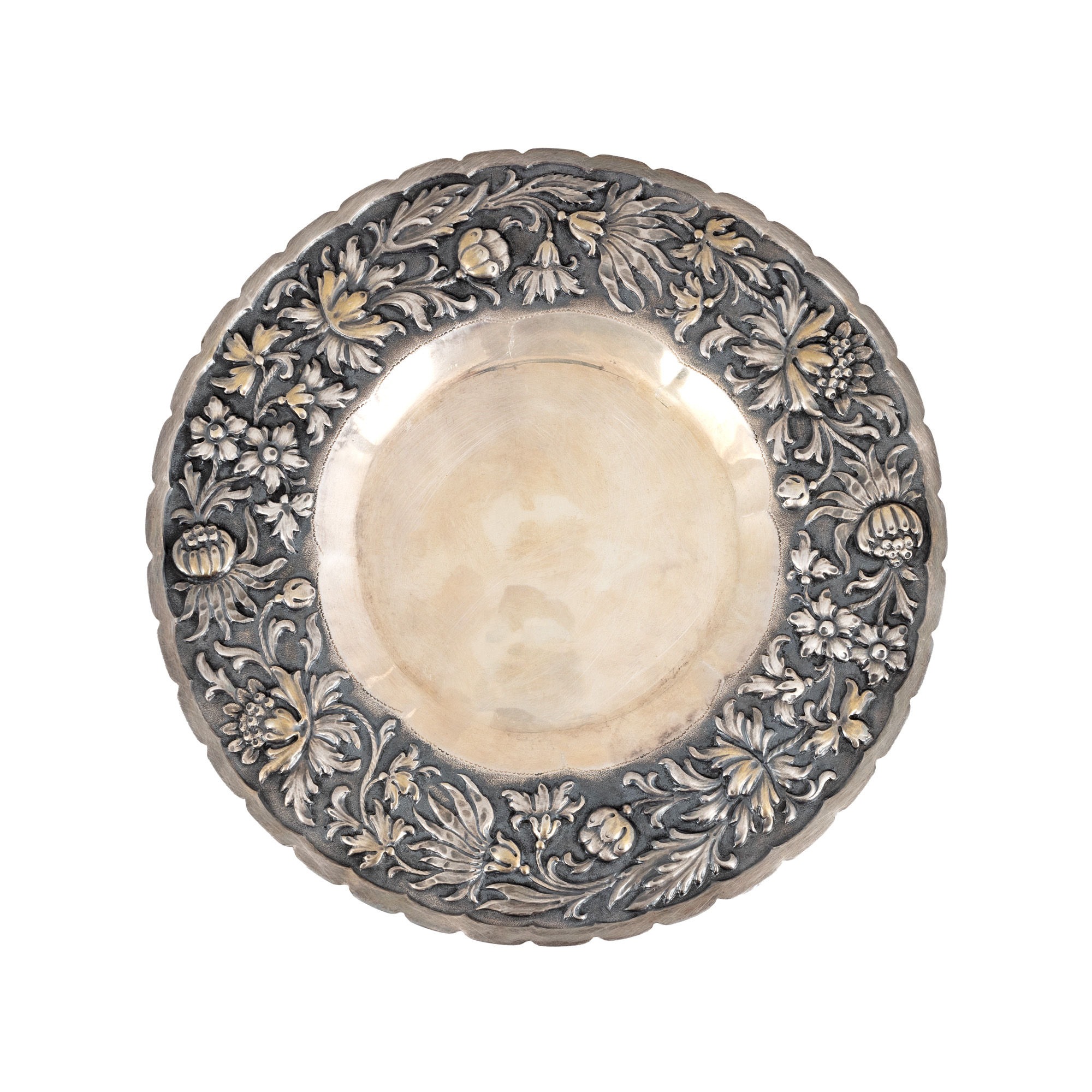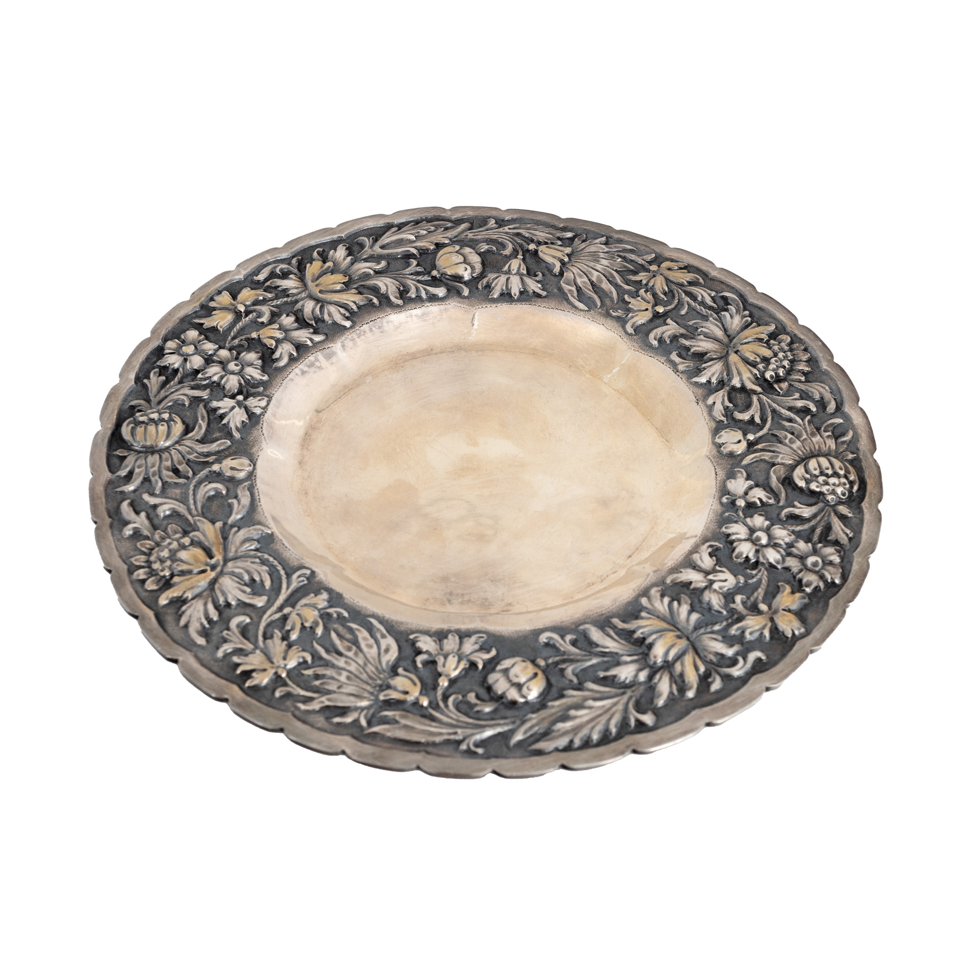58. Mic platou din argint decorat cu motive florale și vegetale, provine din colecția familiei prezidențiale Elena și Nicolae Ceaușescu