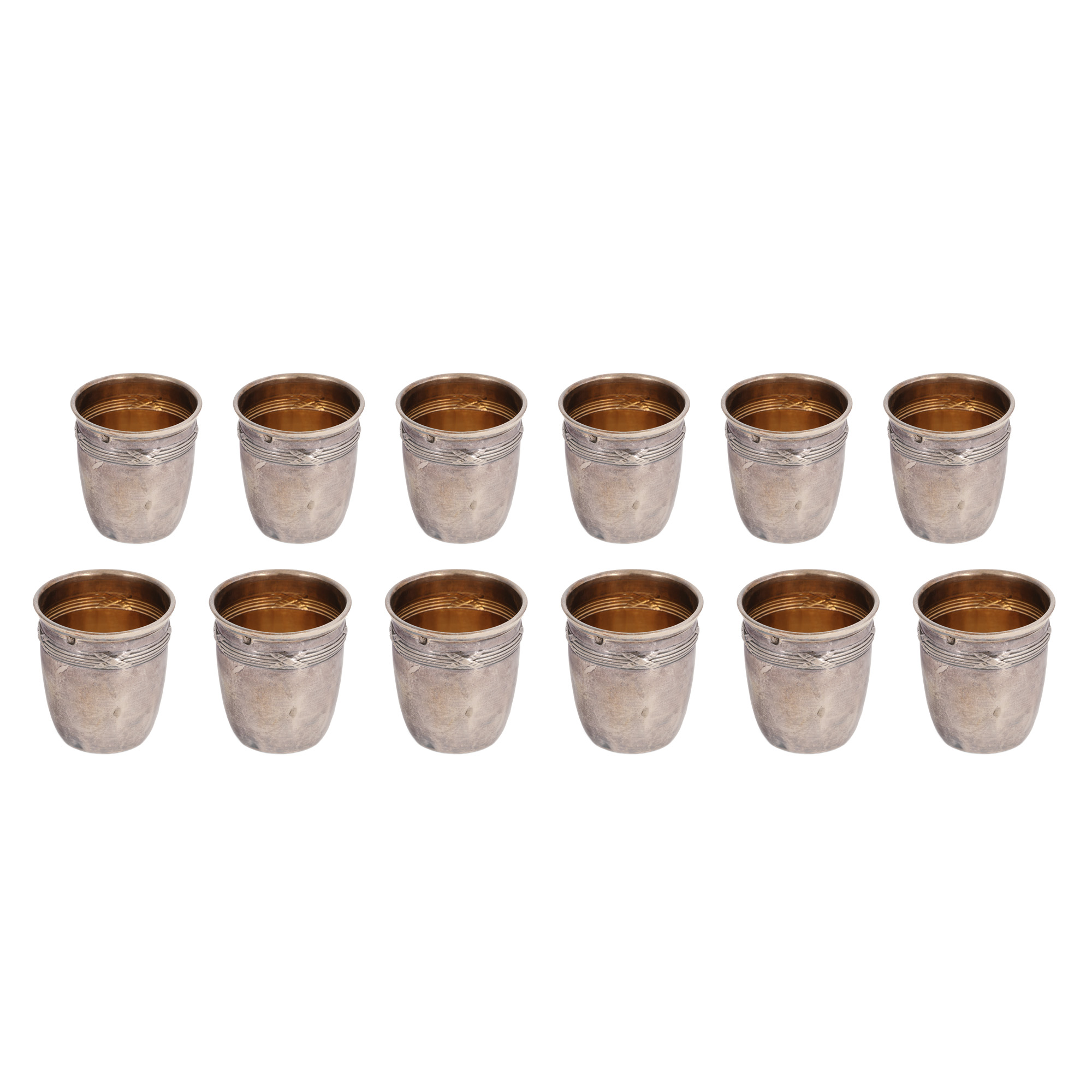 32. Set format din 12 pahare din argint, cca. 1900, în cutia originală