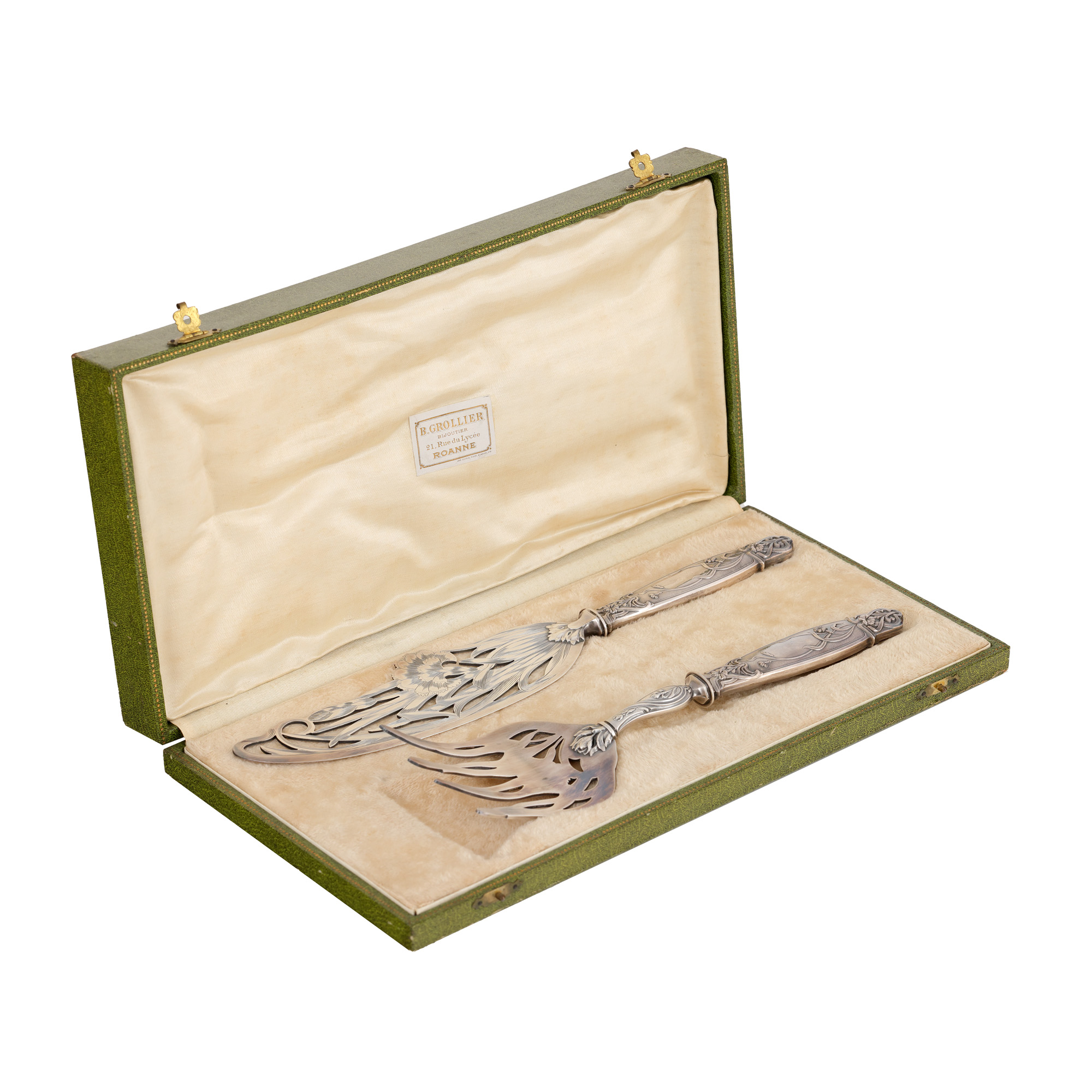 9. Set pentru servirea tortului Émile Puiforcat, din argint, ornat cu garoafe, cca. 1900