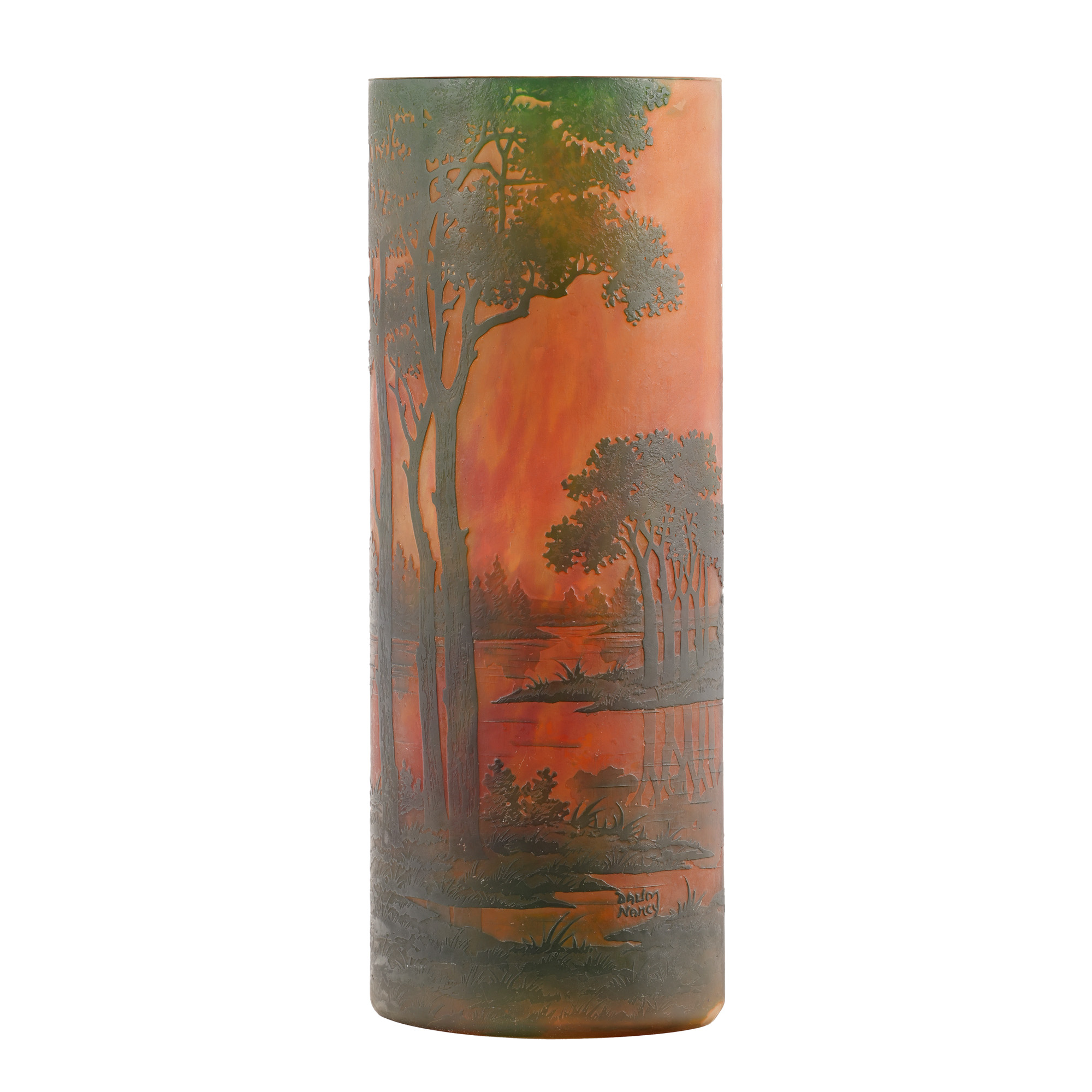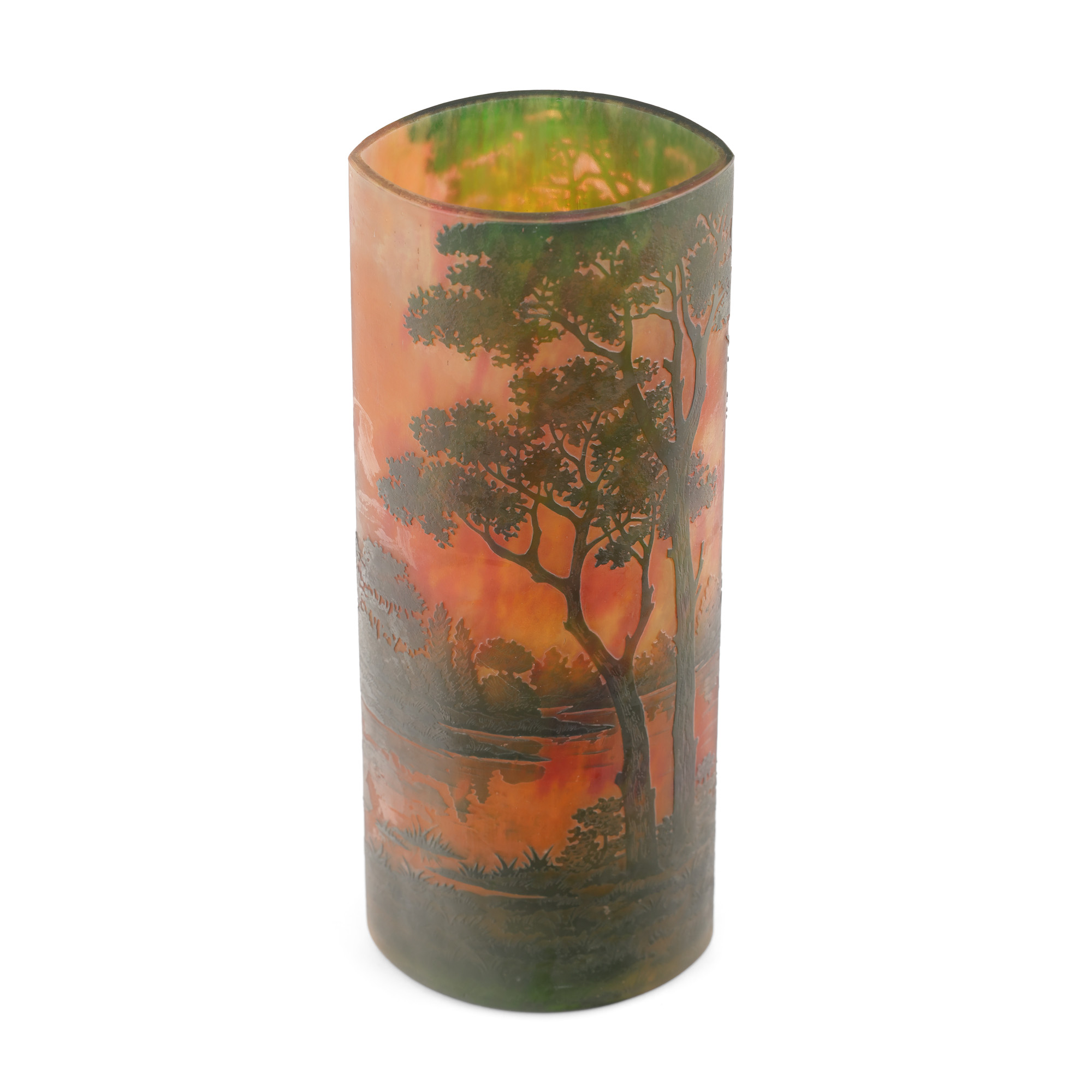 52. Vas Daum Nancy, decorat cu scenă de amurg pe malul lacului, cca. 1925