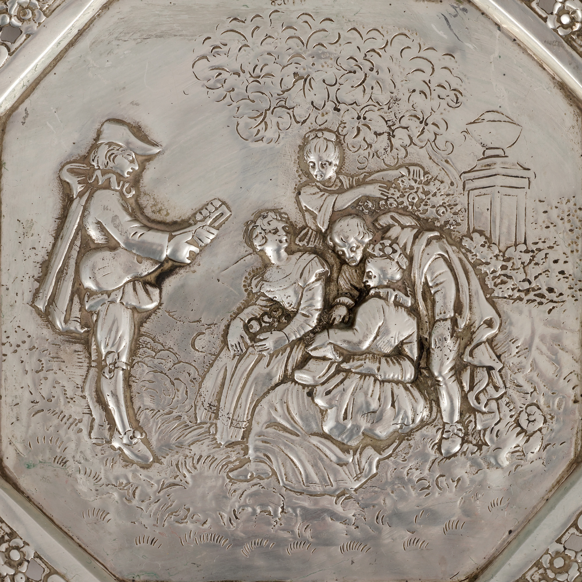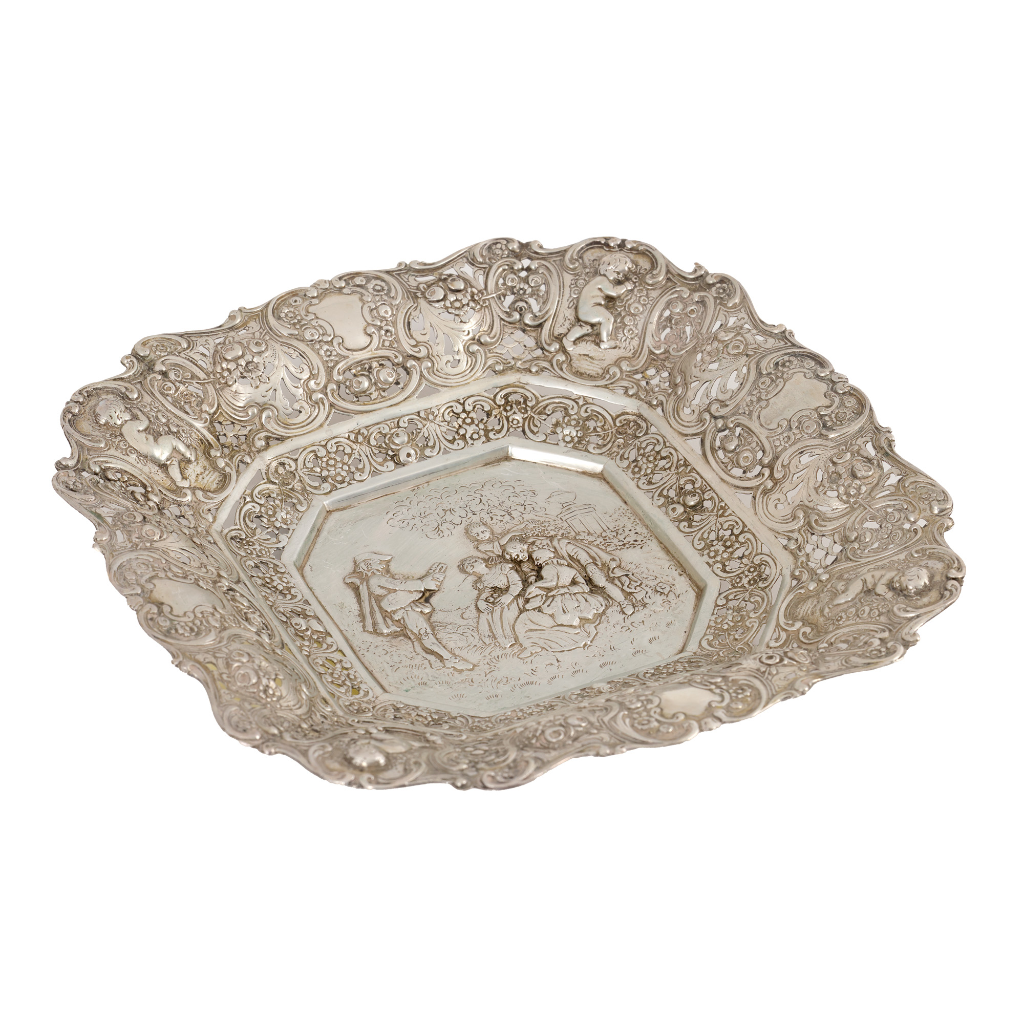 35. Vide-poche din argint, decorat cu scenă galantă, cca. 1820