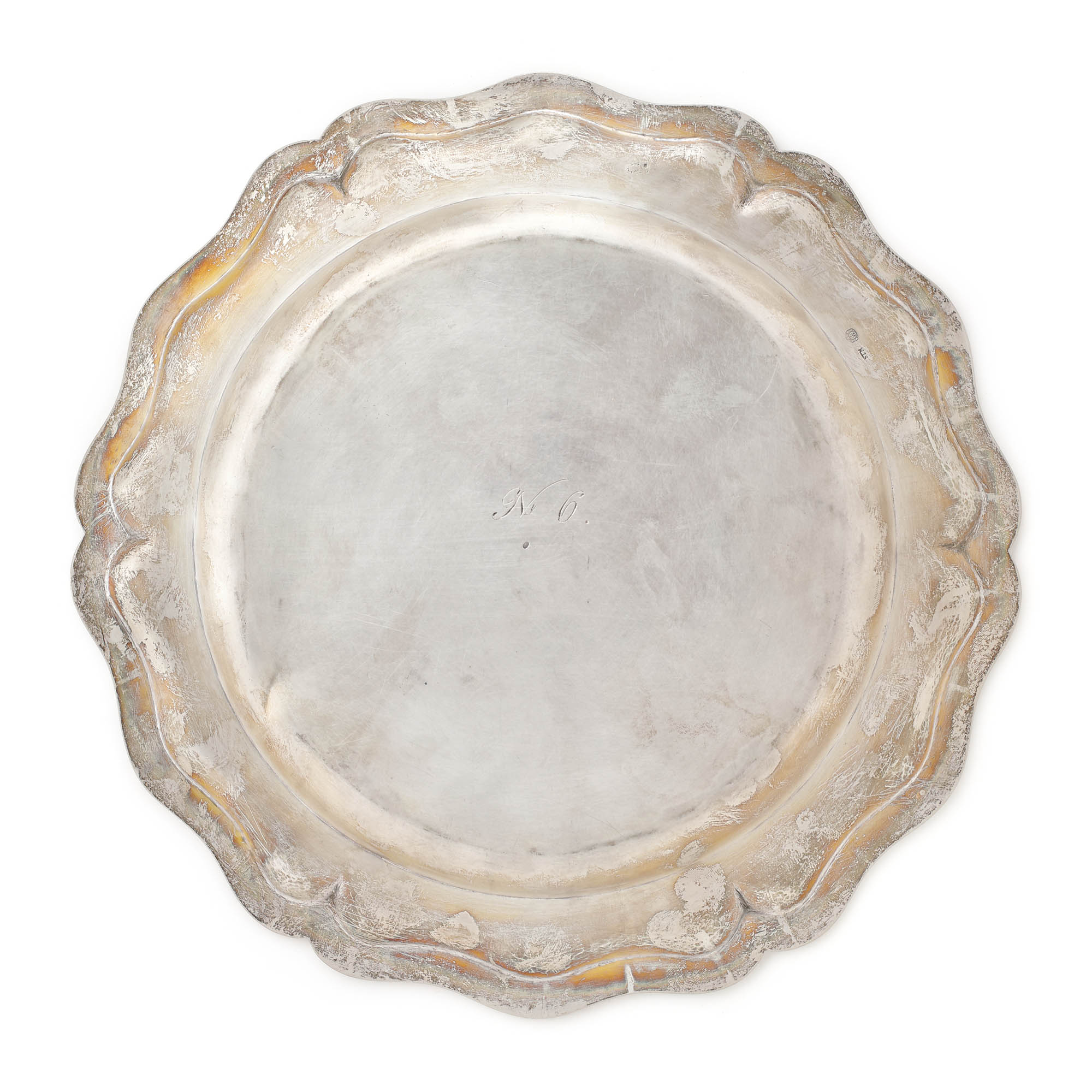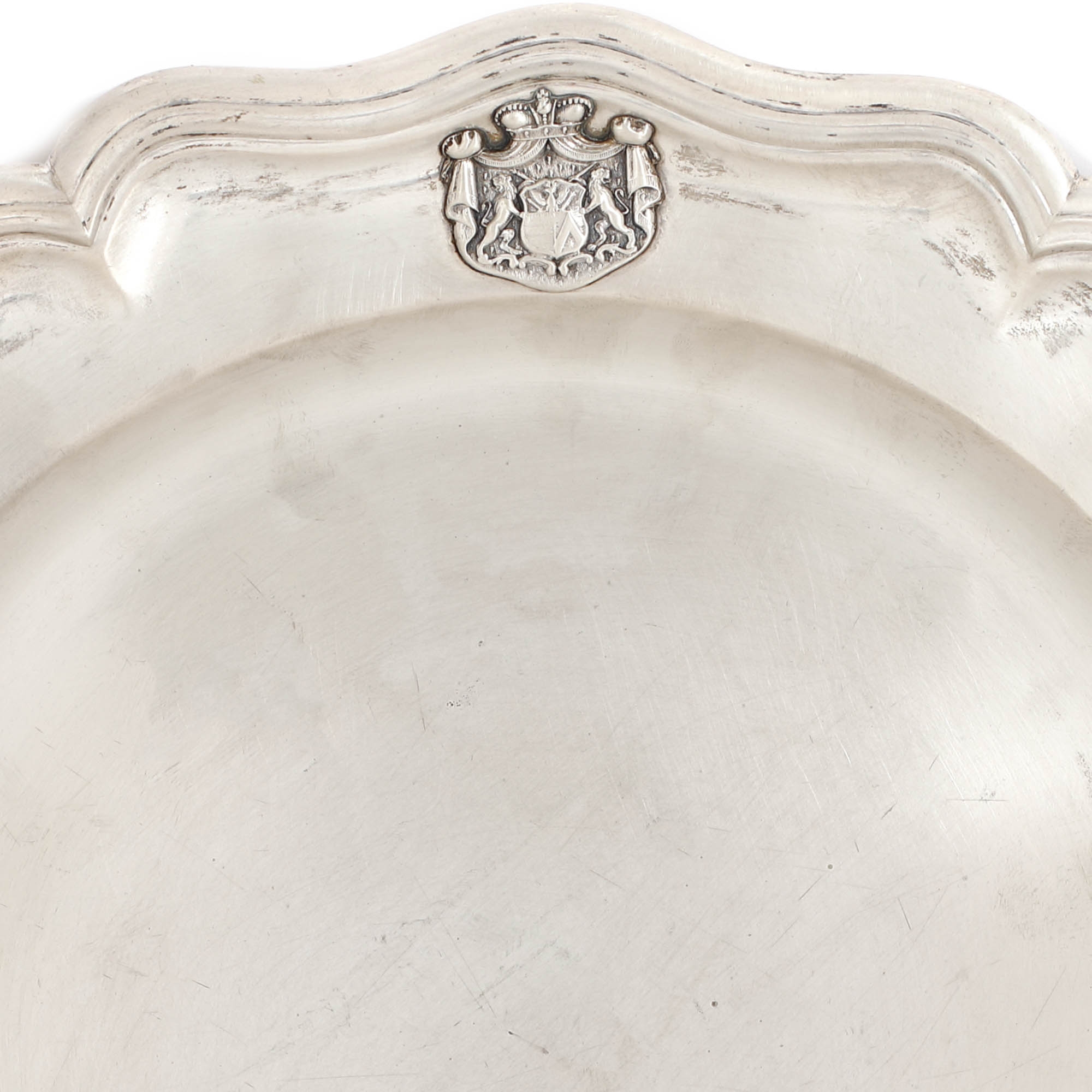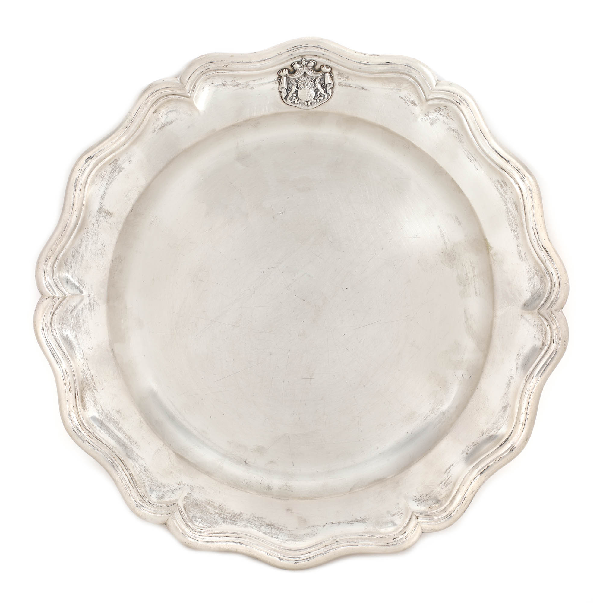 18. Platou din argint Stephan Mayerhoff, decorat cu emblema nobiliară Știrbei (Bibescu), 1837, piesă de colecție