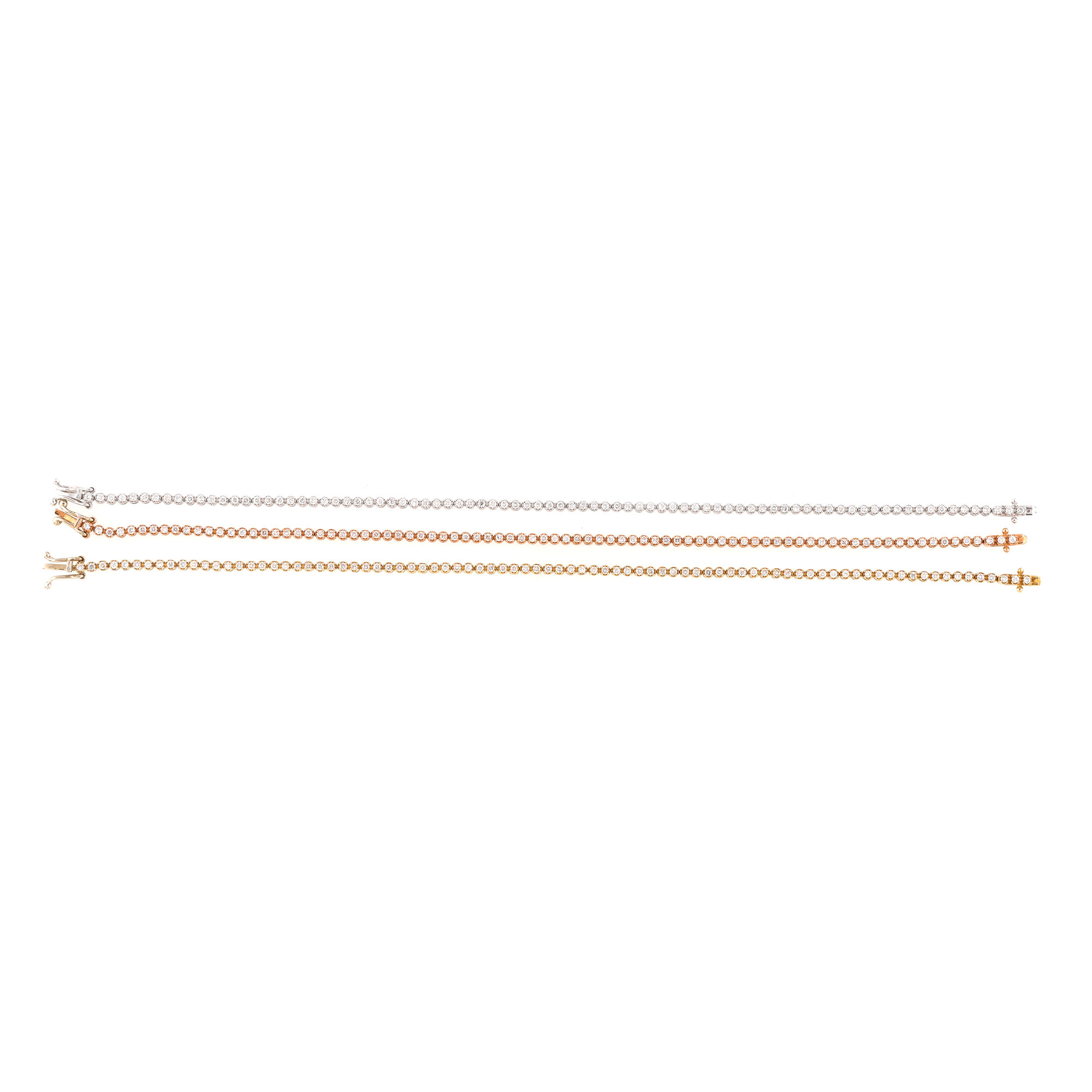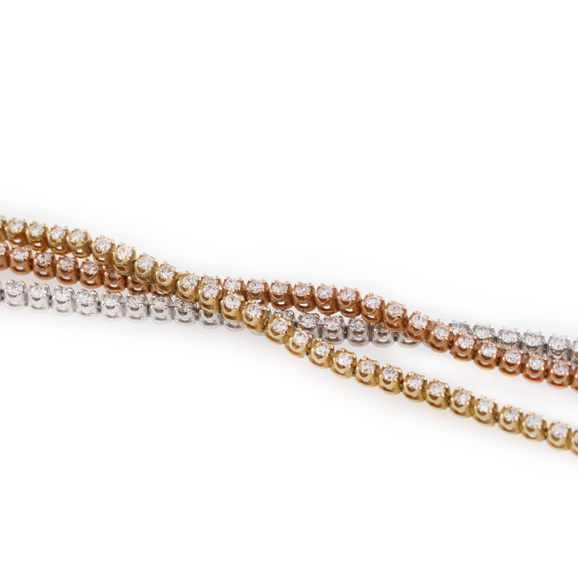 35. Set de trei brățări tennis, din aur în trei culori, decorat cu diamante