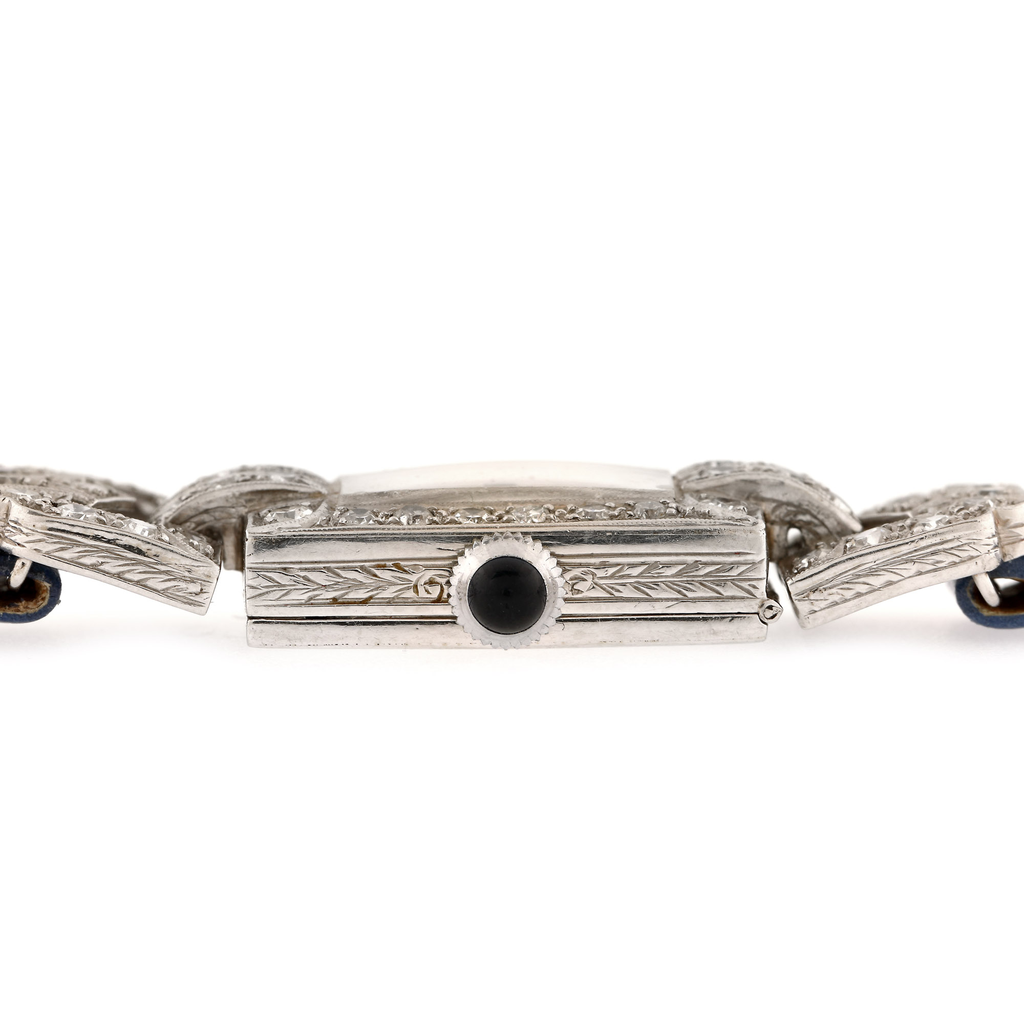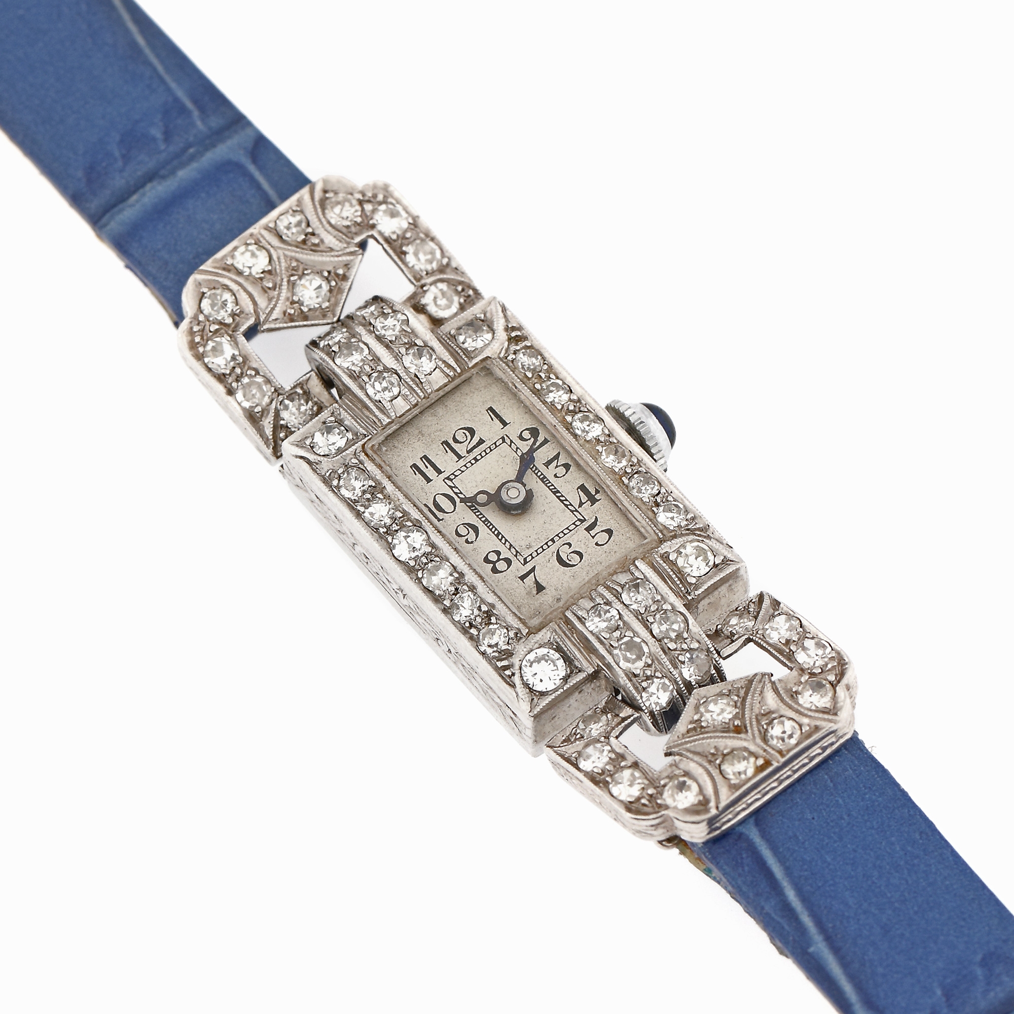 16. Ceas Art Deco din platină, decorat cu diamante, de mână, de damă, cca. 1930