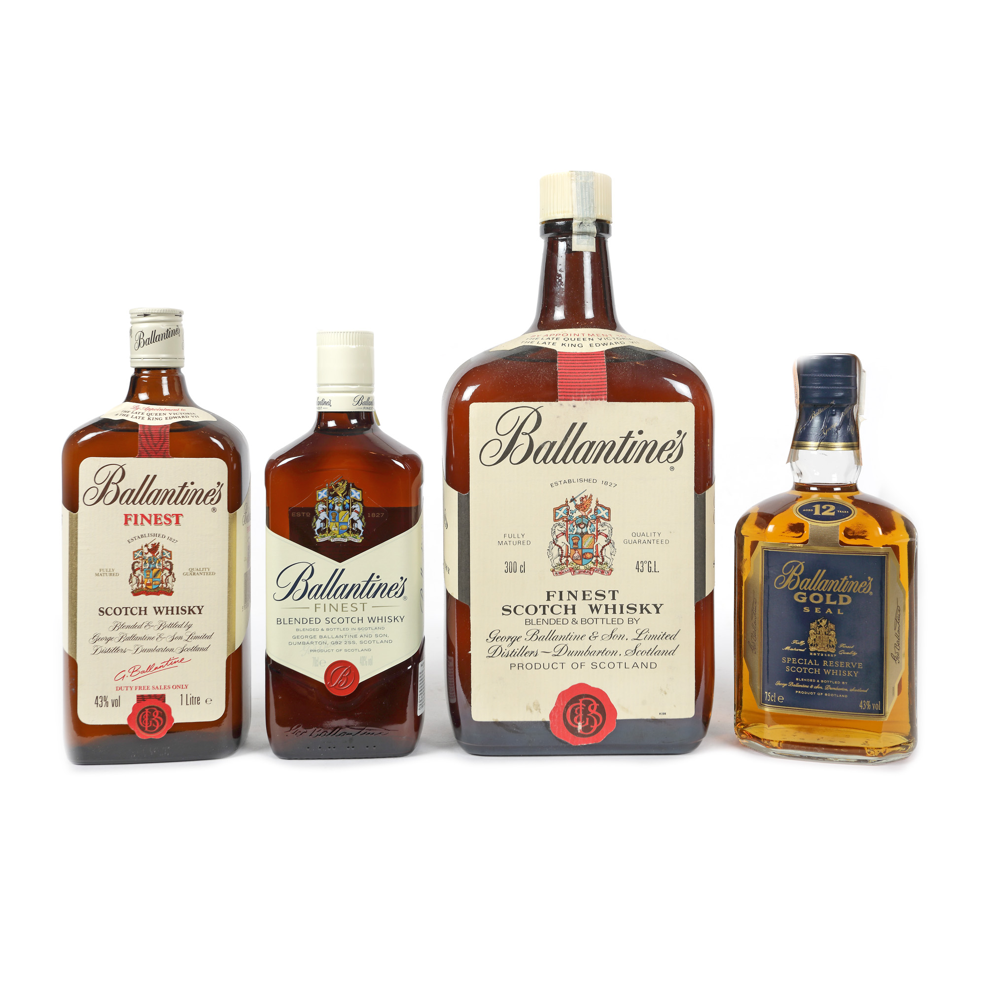 34. Lot format din patru sticle de whisky, Ballantine's Gold Seal, 12 ani vechime, 1st x 0,75l, și Finest 1st x 3l, 1st x 1l, 1st x 0,70l