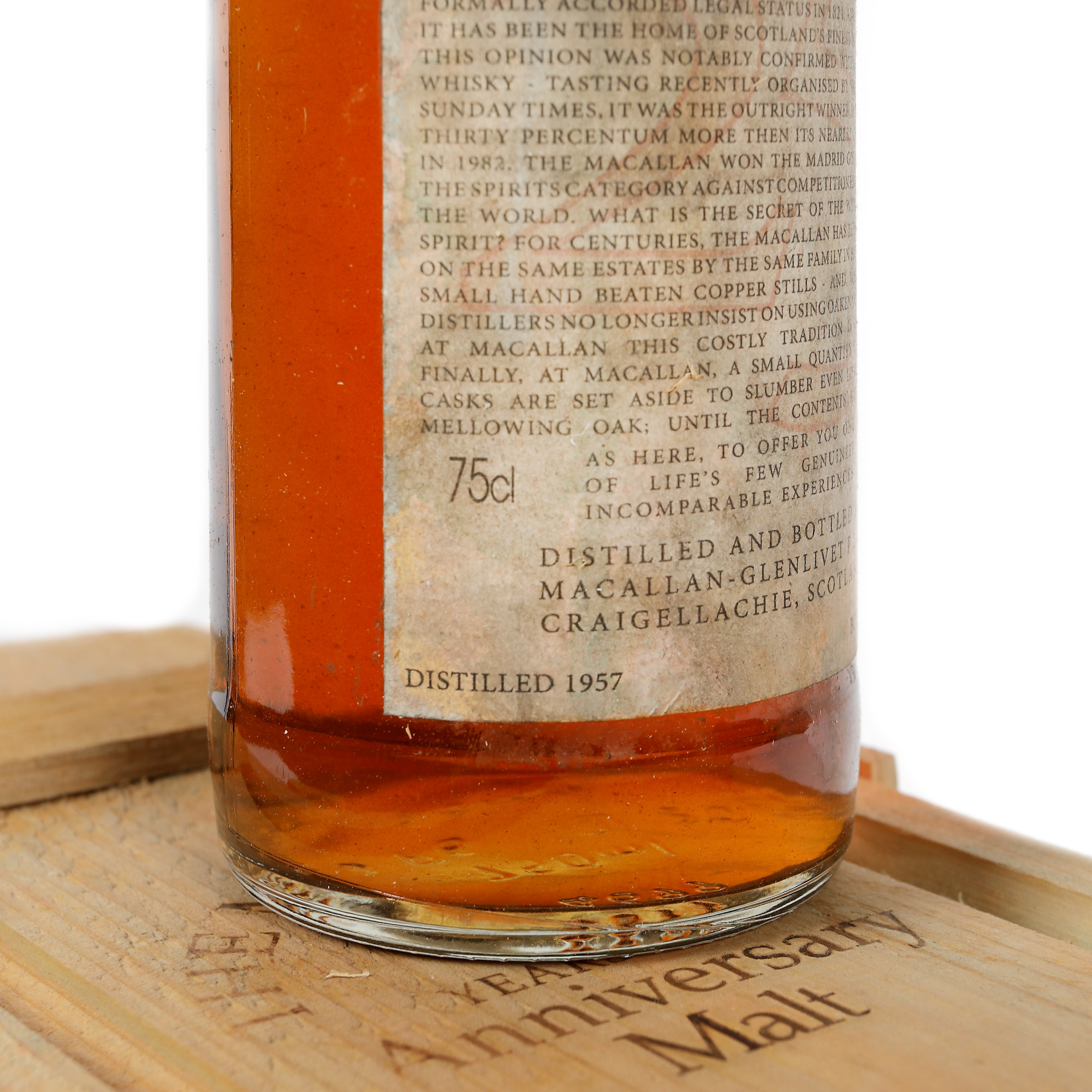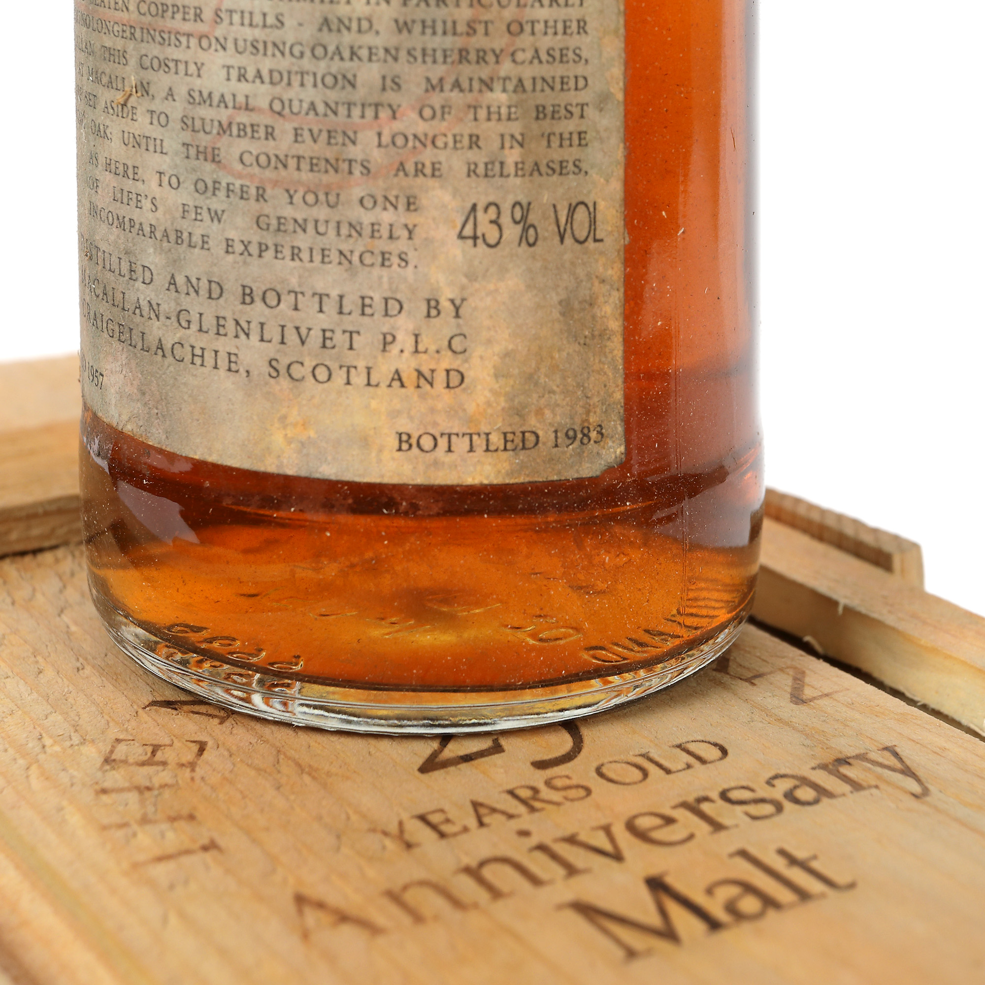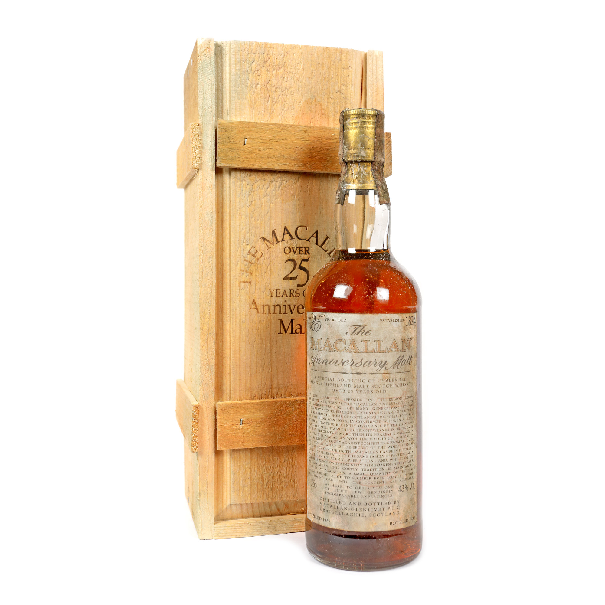 38. Macallan Unblended Single Highland Malt Scotch Whisky, ediție aniversară, 25 ani vechime, distilat de Macallan-Glenlivet & Craigellachie în 1957 și îmbuteliat în 1983, 1st x 0,75l, rar