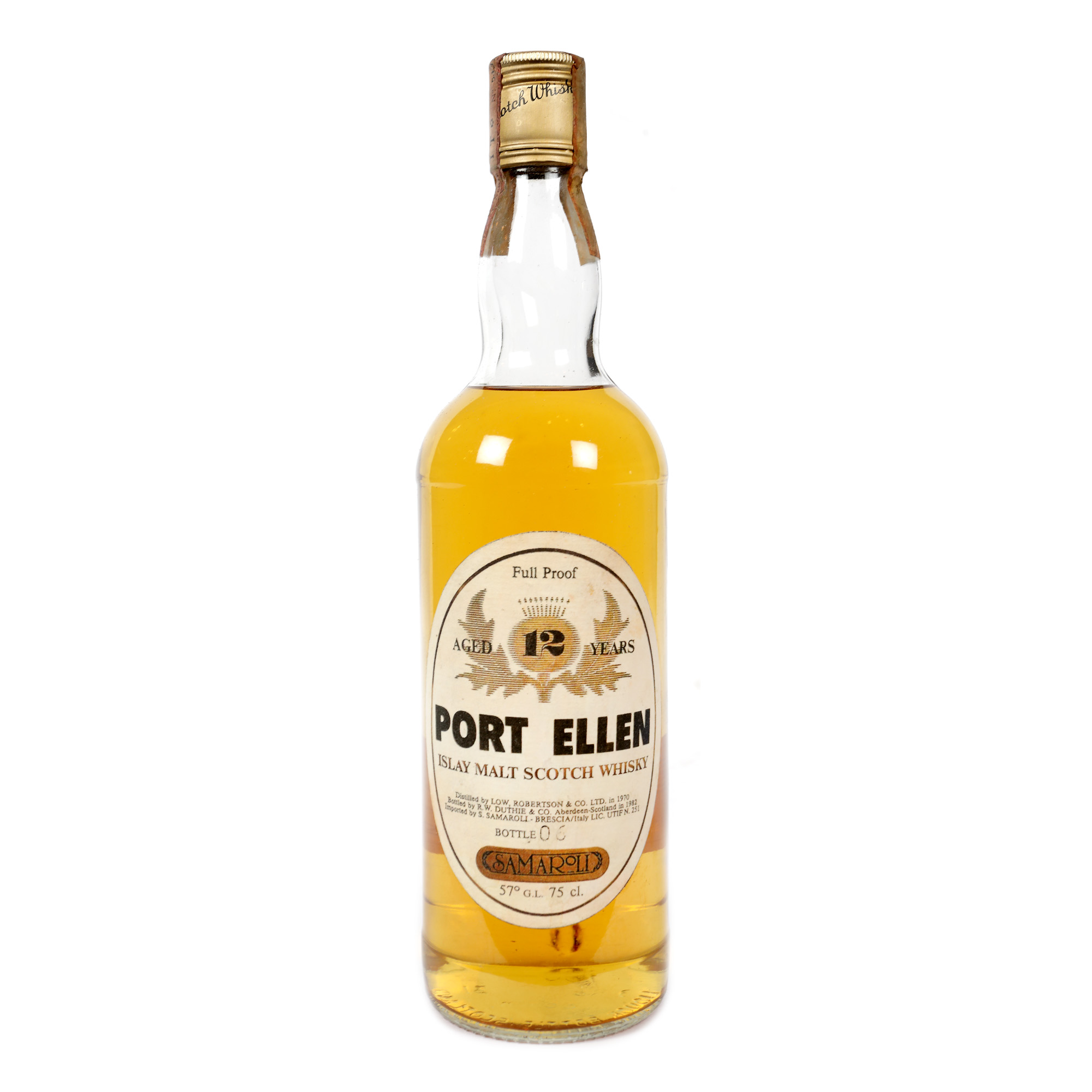 39. Port Ellen Maltings, Islay Malt Whisky, ediție Samaroli, purtând semnatura lui Silvano Samaroli, 12 ani vechime, distilat în 1970, îmbuteliat în 1982, 1st x 0,75l, numerotat, sticla numărul 6