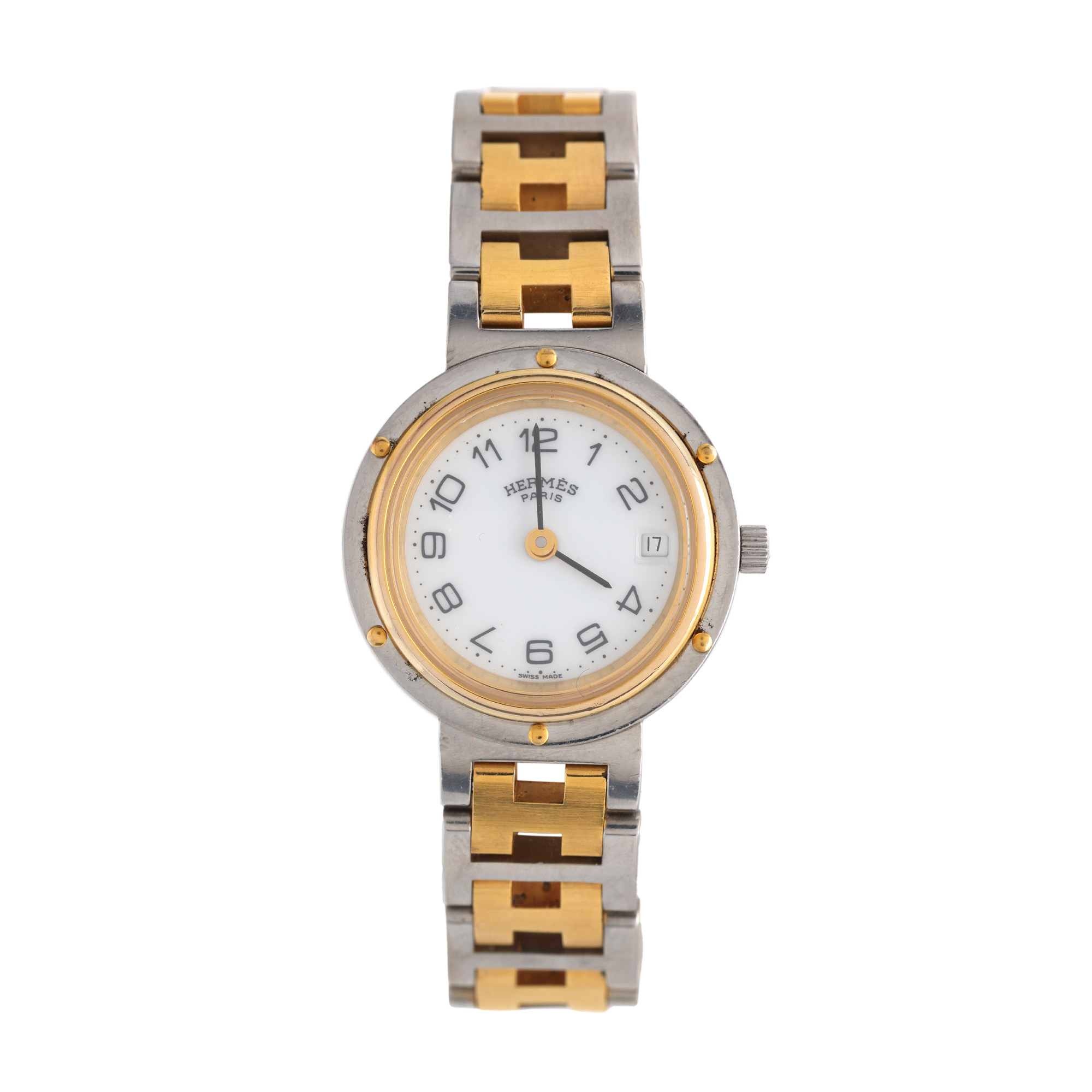 1. Ceas Hermes Clipper, din oțel placat cu aur, de mână, de damă [Cca. 2010]