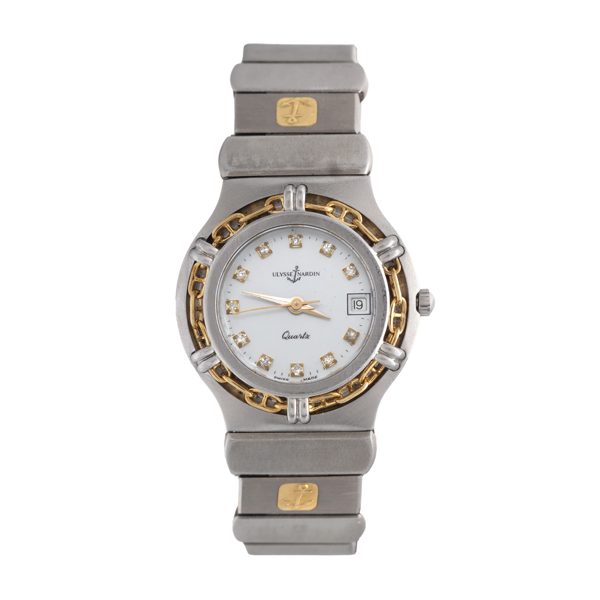 19. Ceas Ulysse Nardin La Chain, din aur și oțel, cu diamante, de mână, de damă [Cca. 2010]