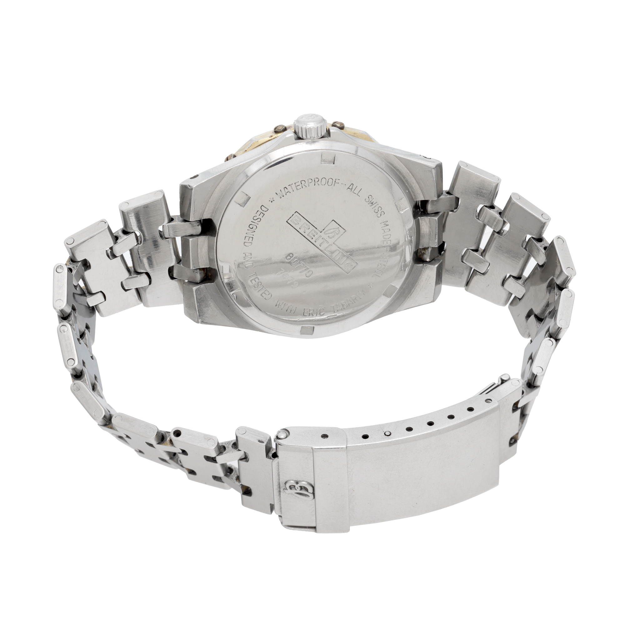 Ceas Breitling Tabarly, de mână, bărbătesc, referință 80770. Mecanism quartz, calibrul ETA 965.102. Cadran de culoare gri, indici punctați, cu un registru pentru dată în dreptul orei 3. Brățară originală, din oțel inoxidabil, cu sistem de închidere de tip deployant. Accesorii: cutia originală. Observații: zale slăbite în puncte-cheie.