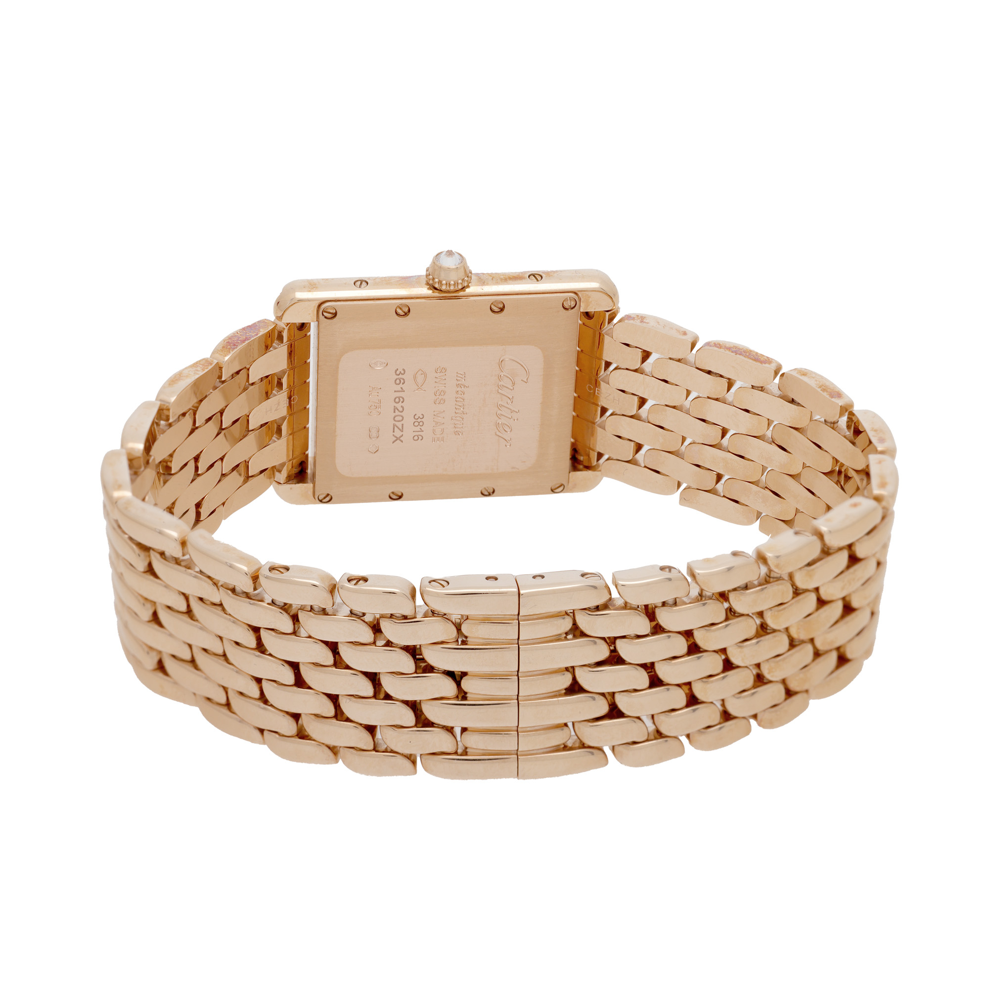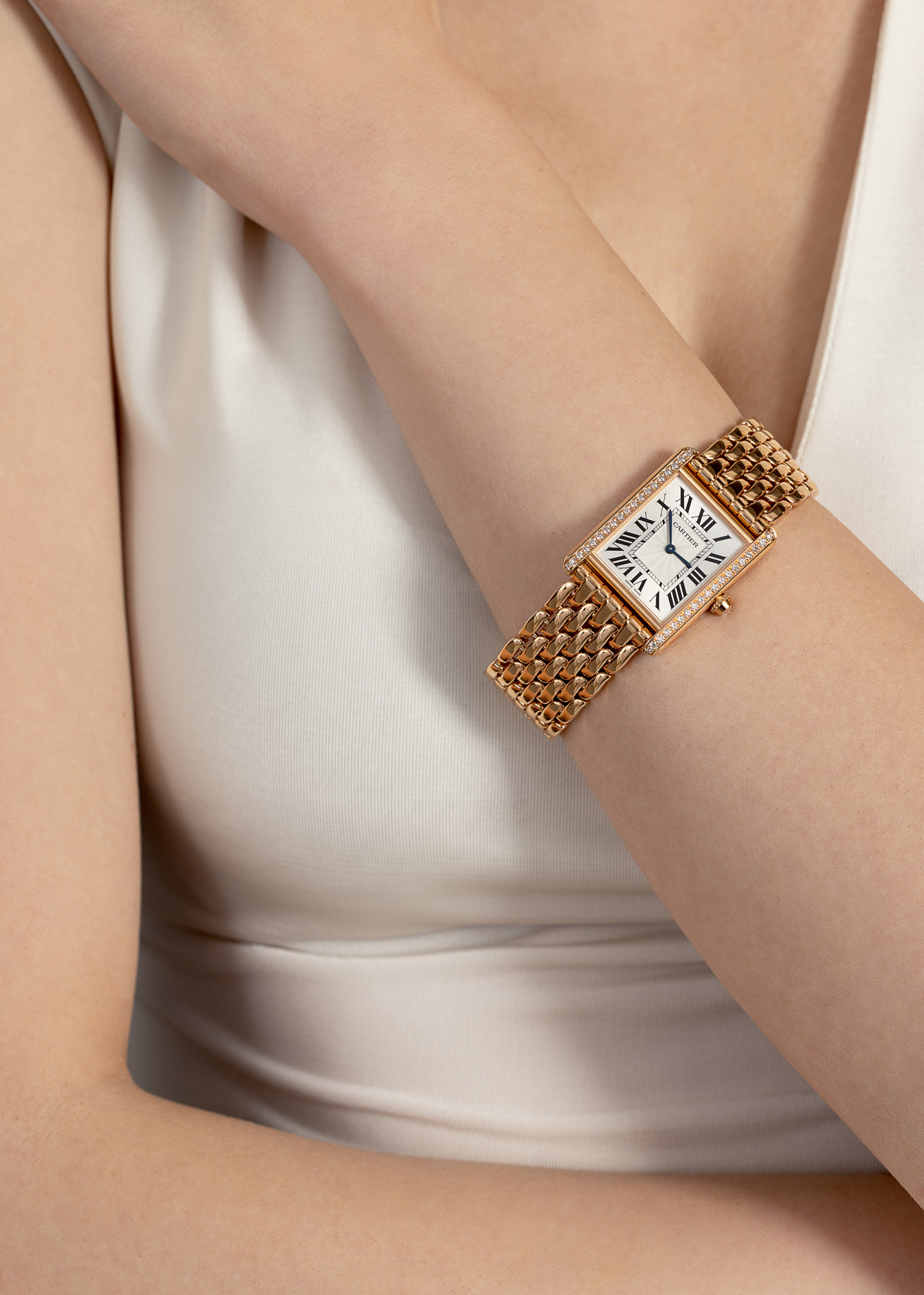 7. Ceas Cartier Tank, din aur roz, cu diamante, de mână, de damă, însoțit de soluție de curățare și cutia originală [2022]