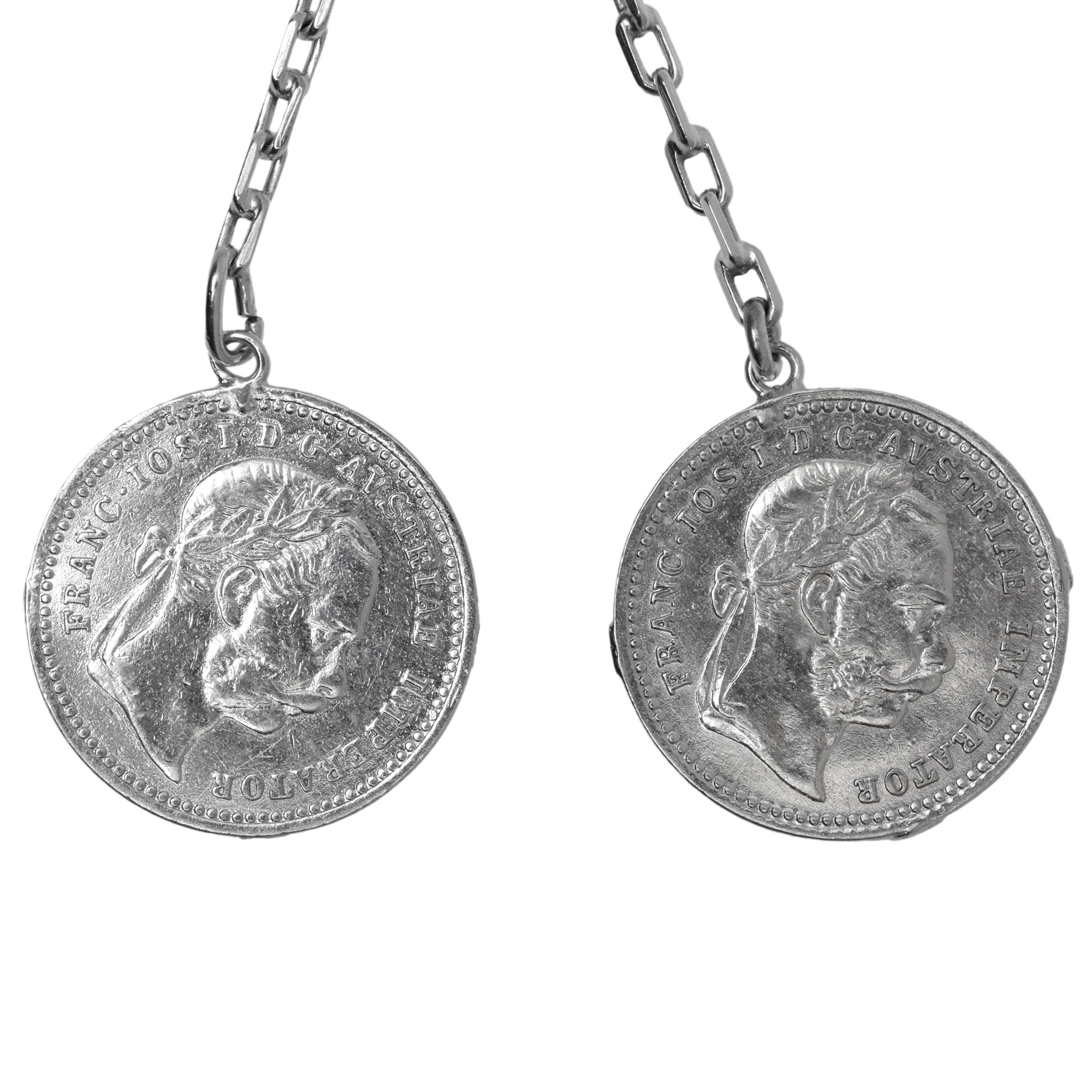 34. Ceas Omega, din argint, de buzunar, bărbătesc, însoțit de lanț și monede din argint [Cca. 1930]