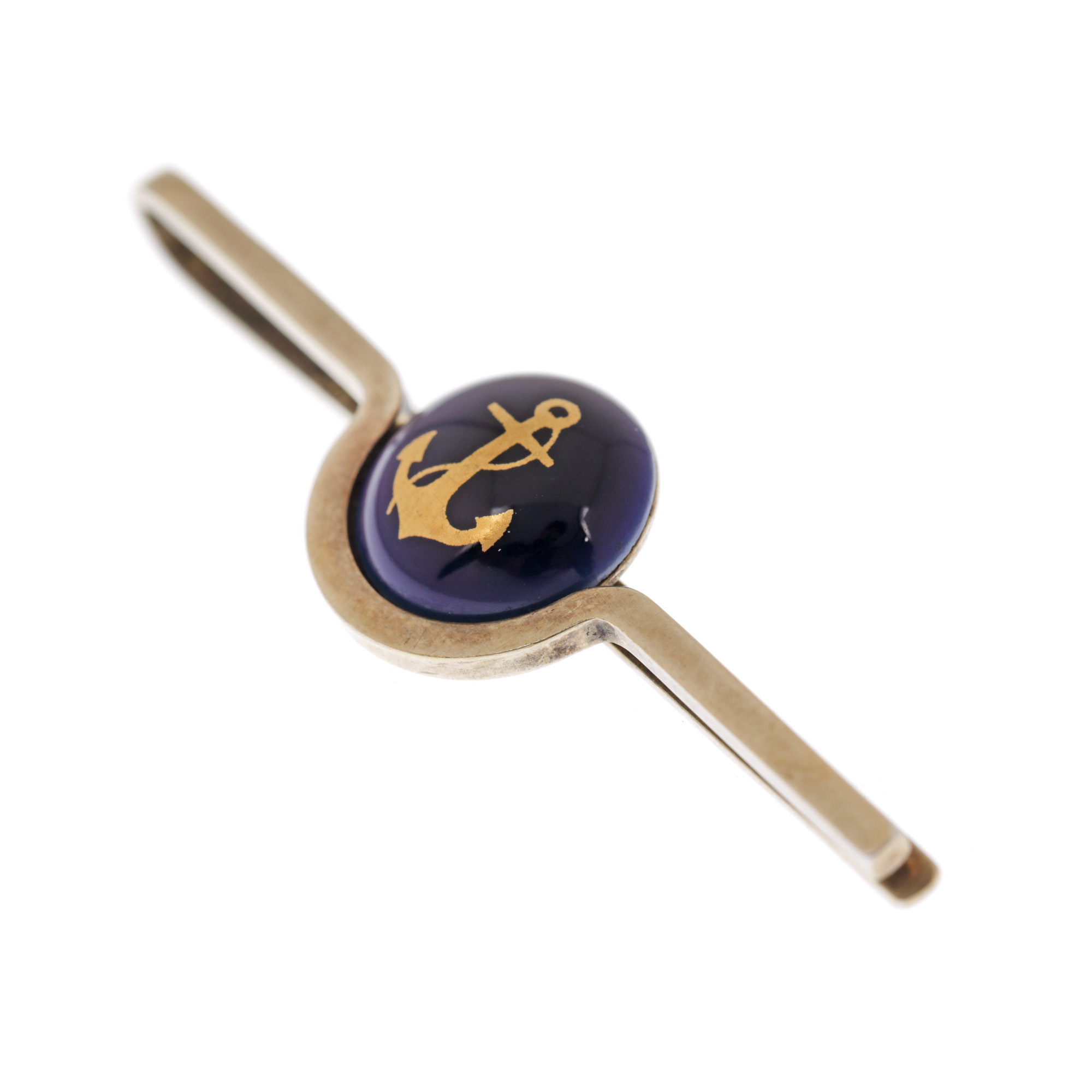 4. Ac de cravată Georg Jensen din argint și porțelan pictat cu aur coloidal, decorat cu ancoră