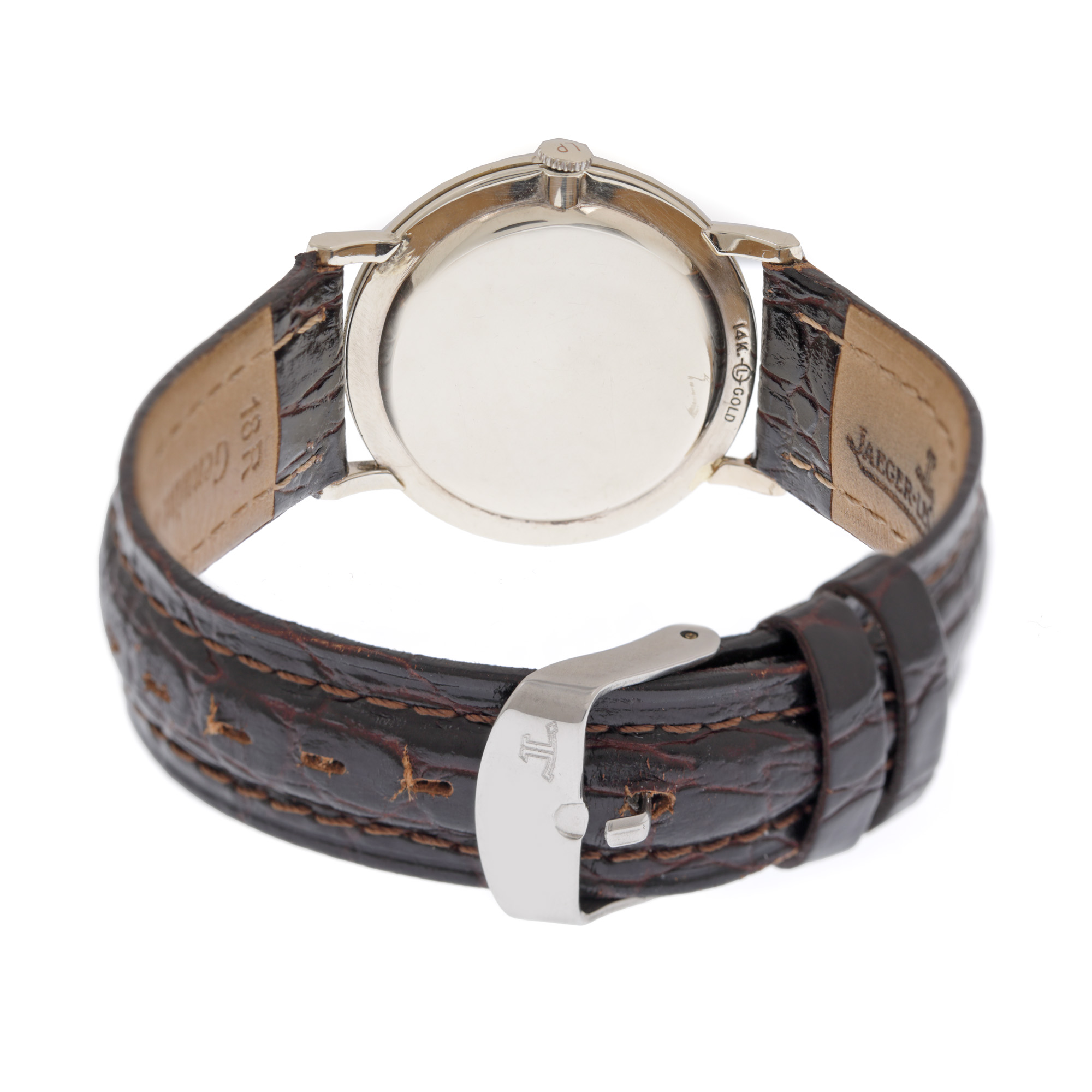 Ceas Jaeger LeCoultre, din aur, cu diamante old cut, bezel aur galben cu decor florentin, de mână, unisex. Mecanism cu armare manulă, manufactură Vacheron Constantin. Cadran de culoare champagne, indici punctați cu diamante. Curea Jaeger LeCoultre adăugată aftermarket, de culoare maro, cu sistem de închidere de tip clasic. Accesorii: cutie Jaeger LeCoultre.