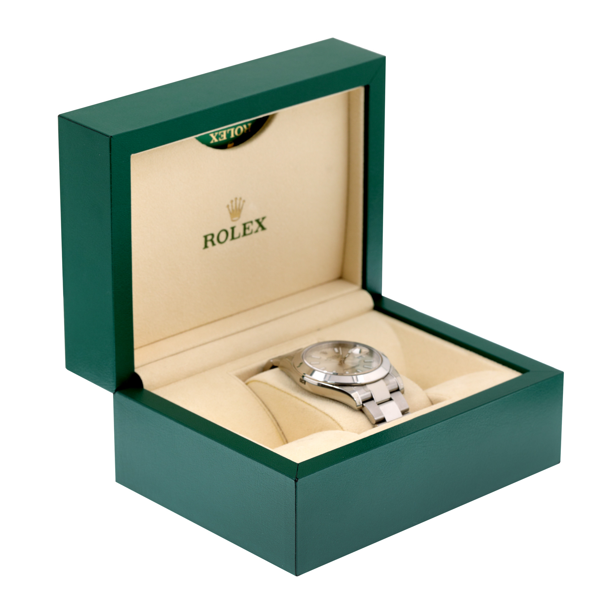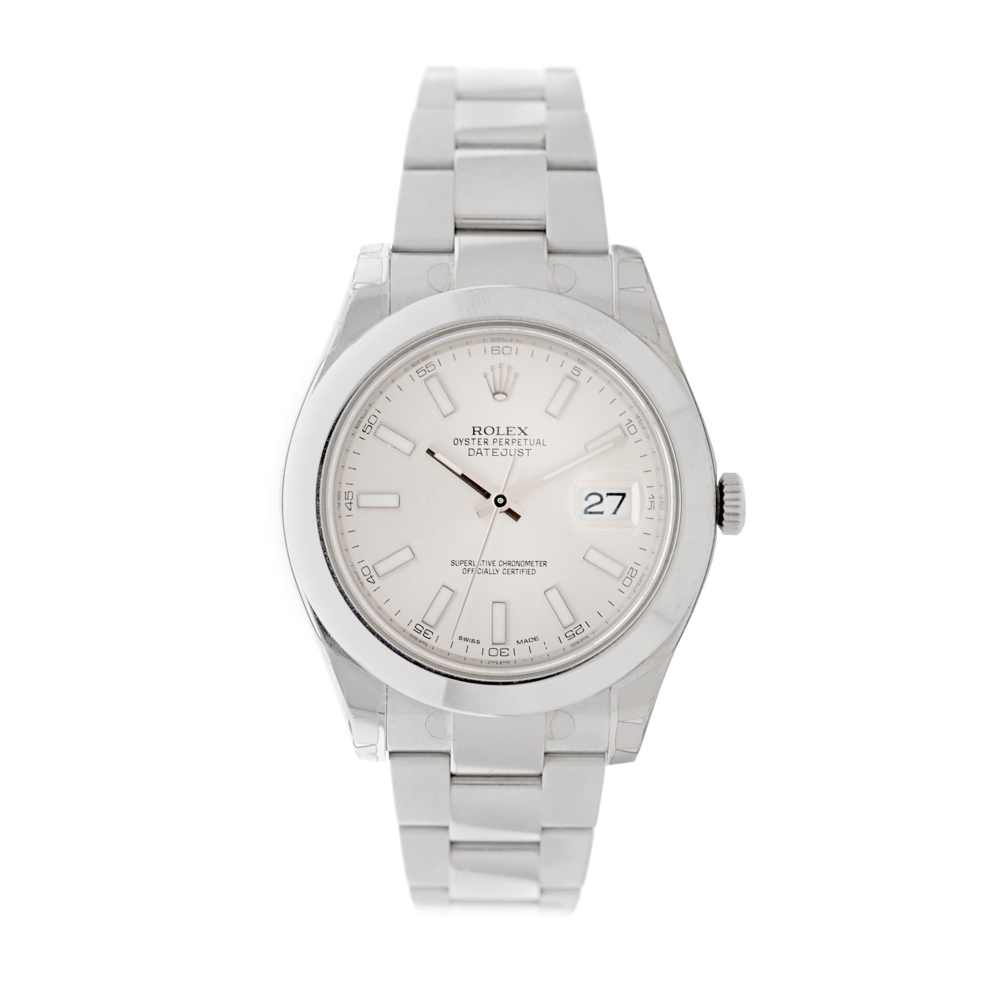 Ceas Rolex Datejust II, de mână, bărbătesc, referință 116300. Mecanism automatic, calibrul 3136. Cadran de culoare argintiu, indici baghetă, cu un registru pentru dată în dreptul orei 3. Brățară originală, din oțel inoxidabil, cu sistem de închidere de tip deployant. Accesorii: cutia originală, card de garanție, manual de instrucțiuni.