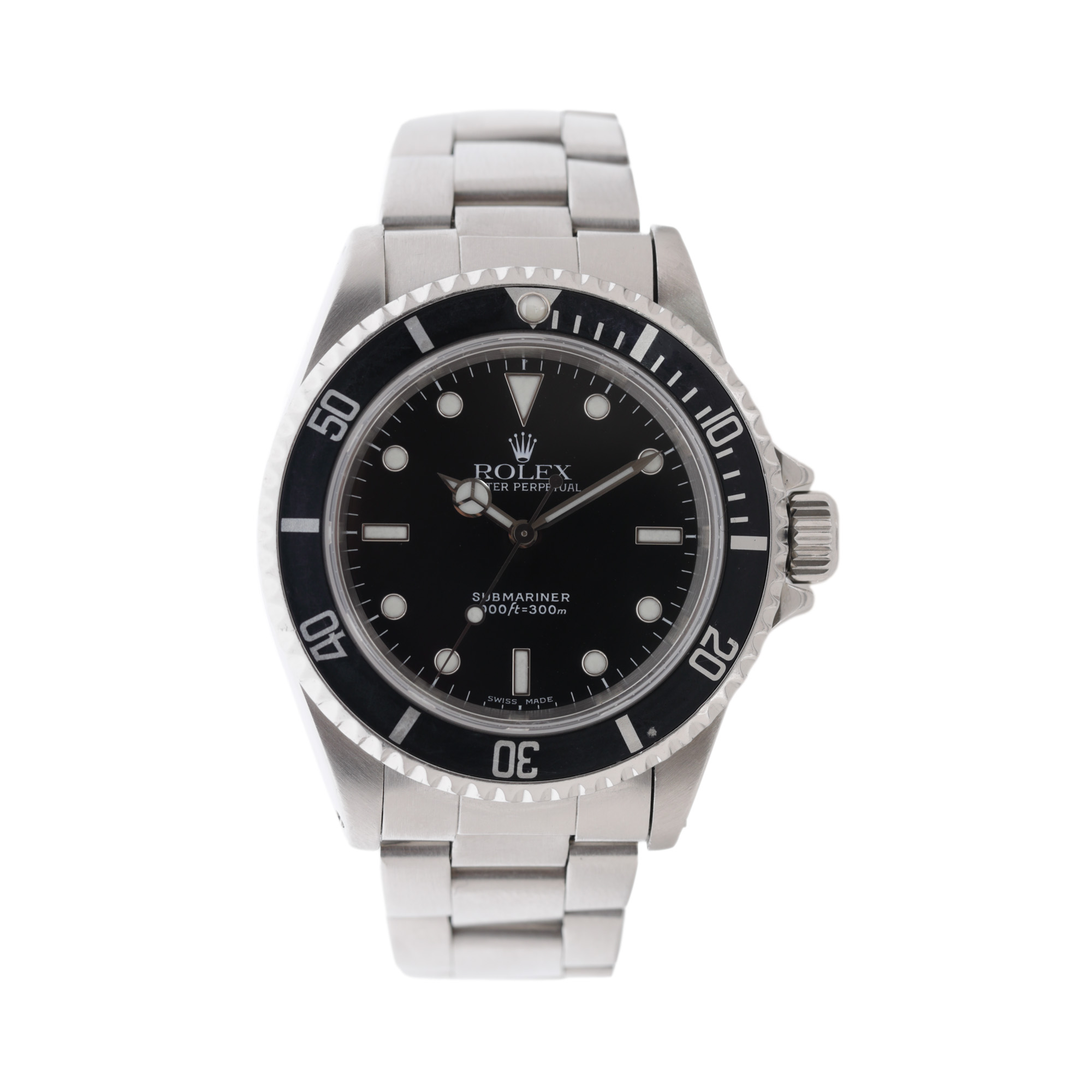 Ceas Rolex Submariner, de mână, bărbătesc, referință 14060. Mecanism automatic, calibrul 3130, bezel mobil unidirecțional. Cadran de culoare negru, indici puncte. Brățară originală, din oțel, cu sistem de închidere de tip deployant.