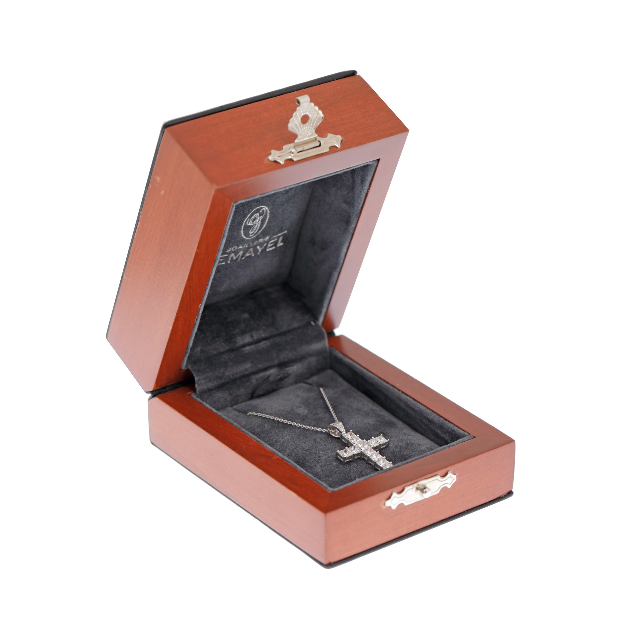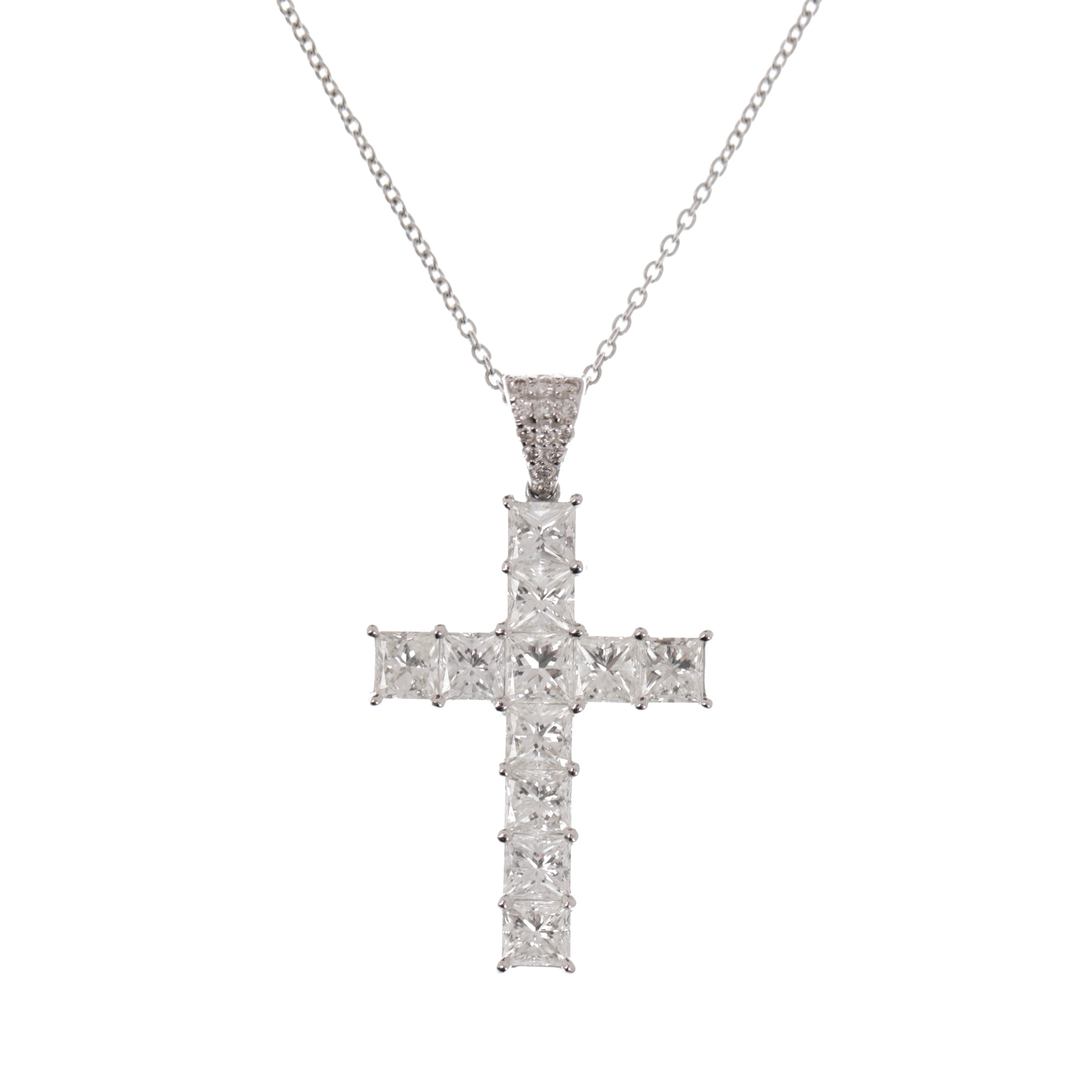 44. Lanț cu pandantiv-cruce din aur alb, ornat cu diamante