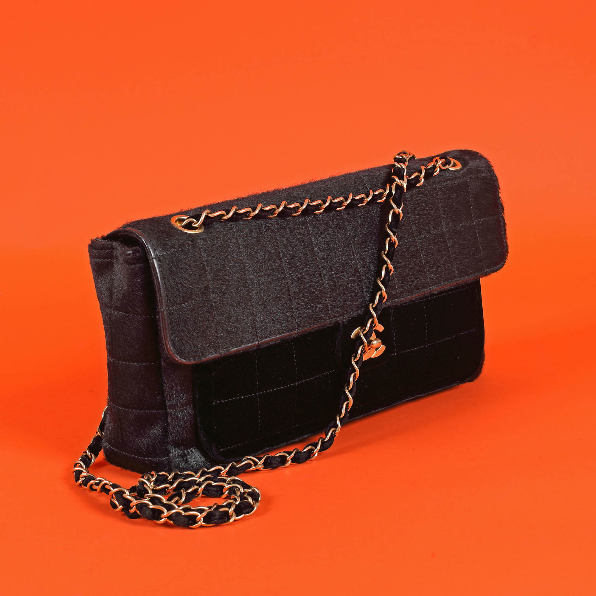 3. ”Black Chocolate Bar” - geantă Chanel, din păr de ponei și catifea, de culoare neagră, de damă [Cca. 2005]