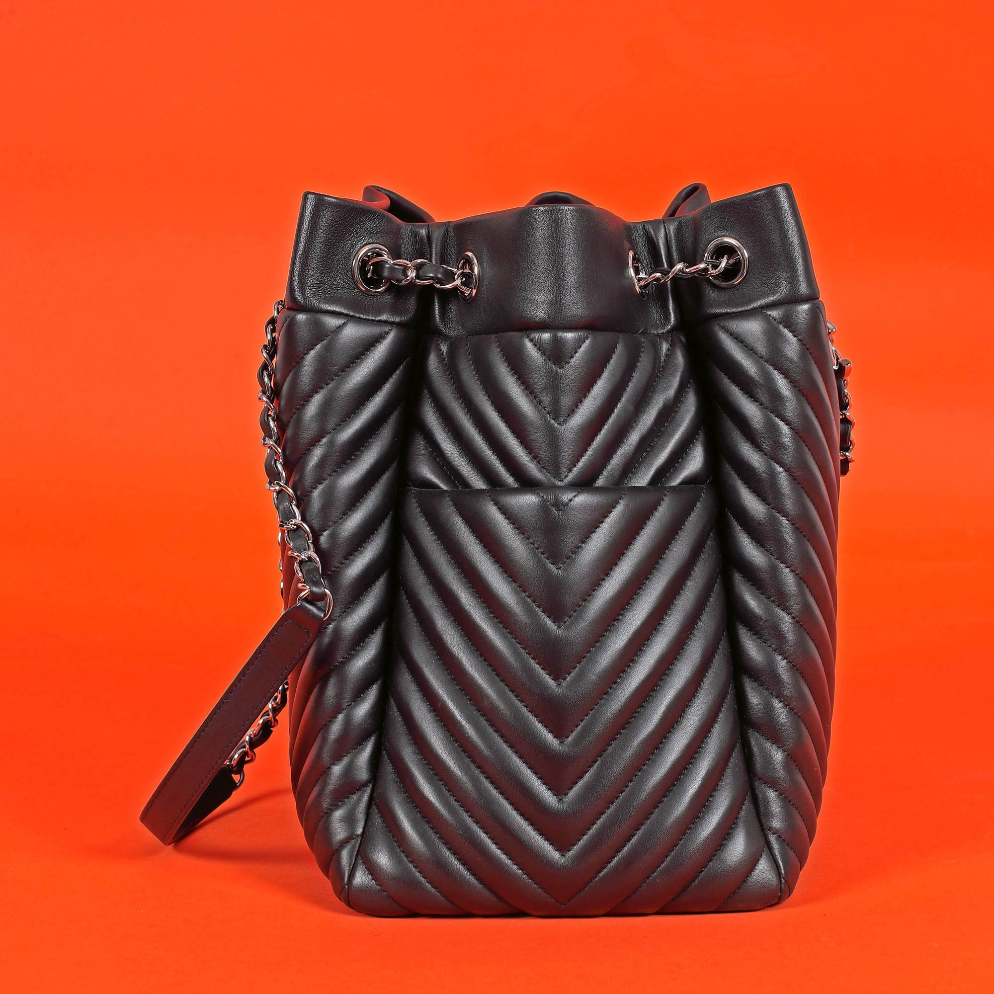 20. Geantă Chanel Drawstring Bucket, de damă, însoțită de card de autenticitate [2016]