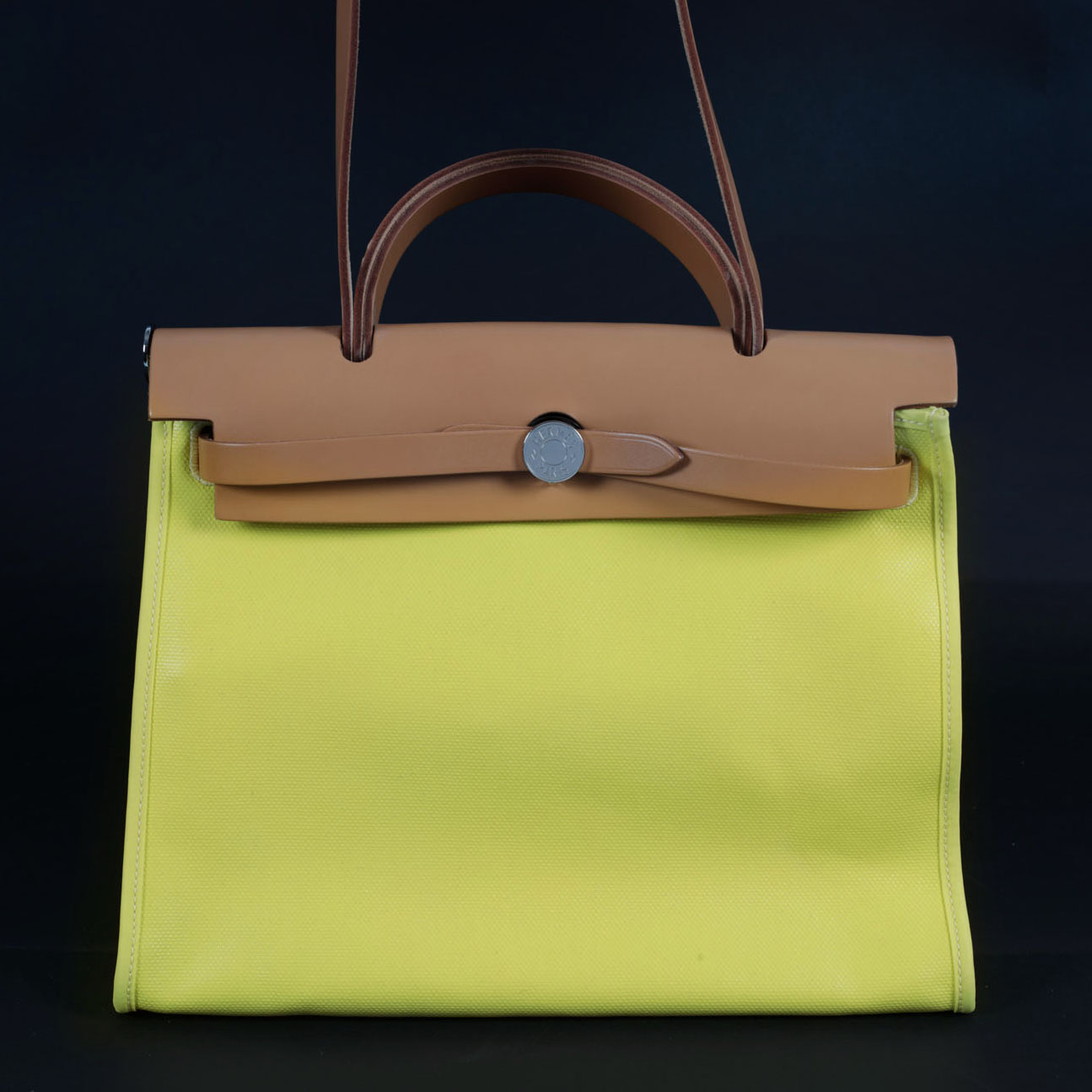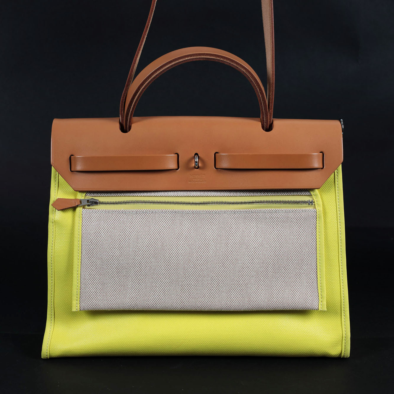 2. ”Herbag Zip 31” - geantă Hermès, din material textil și piele, de culoare Lime, de damă, vine însoțită de factură, husa originală [2017]