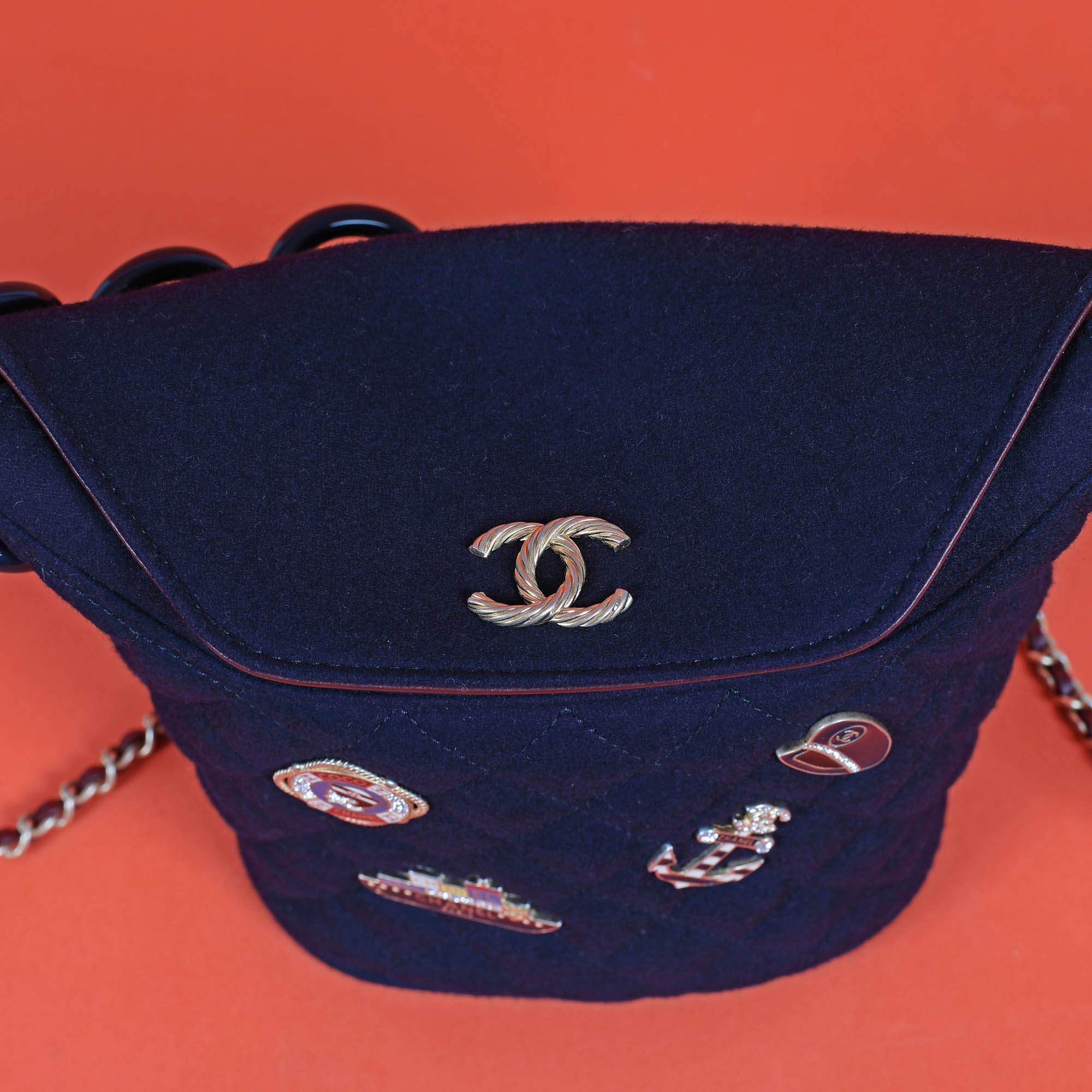 21. "Paris Hamburg Bucket Bag" - geantă Chanel, cu accesorii tematice nautice, de damă, însoțită de card de autenticitate și cutie originală [2018]