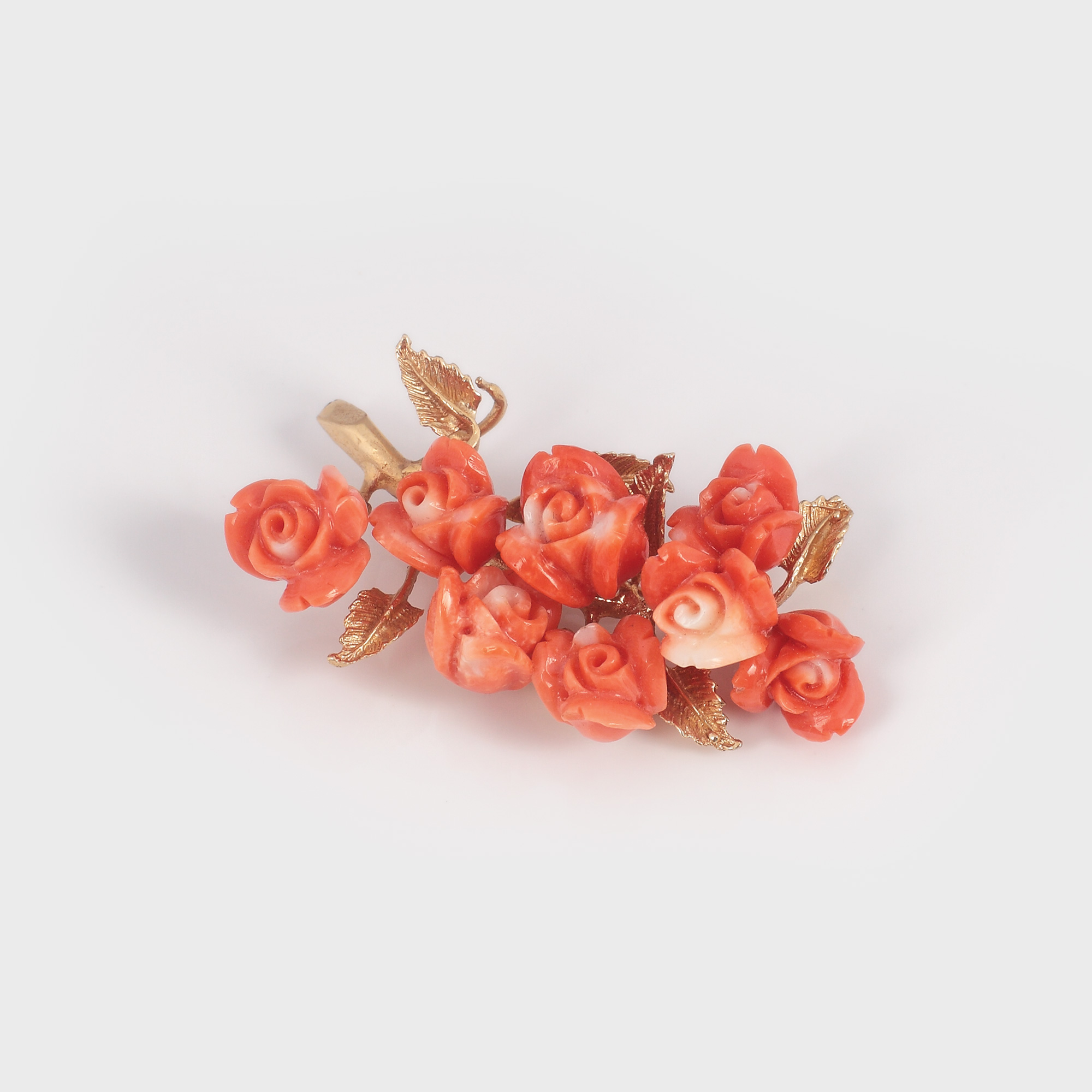 2. Broșă din aur, decorată cu corali sculptați în forma unui buchet de trandafiri, cca. 1930