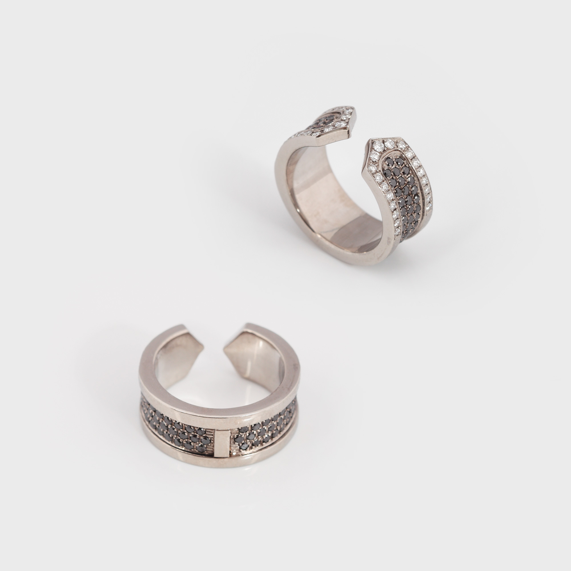 11. Inel-verighetă din aur alb, decorat cu pavaj de diamante albe și negre [sec. XX]