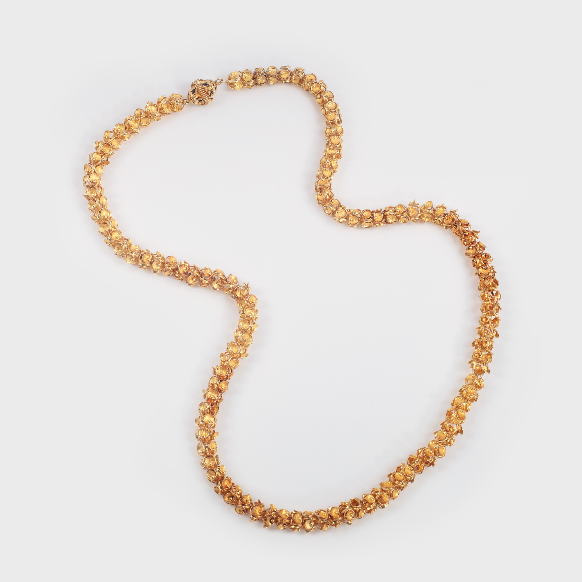 19. Excepțional realizat colier din aur, decorat cu ghirlandă de flori, sfârșitul sec. XX