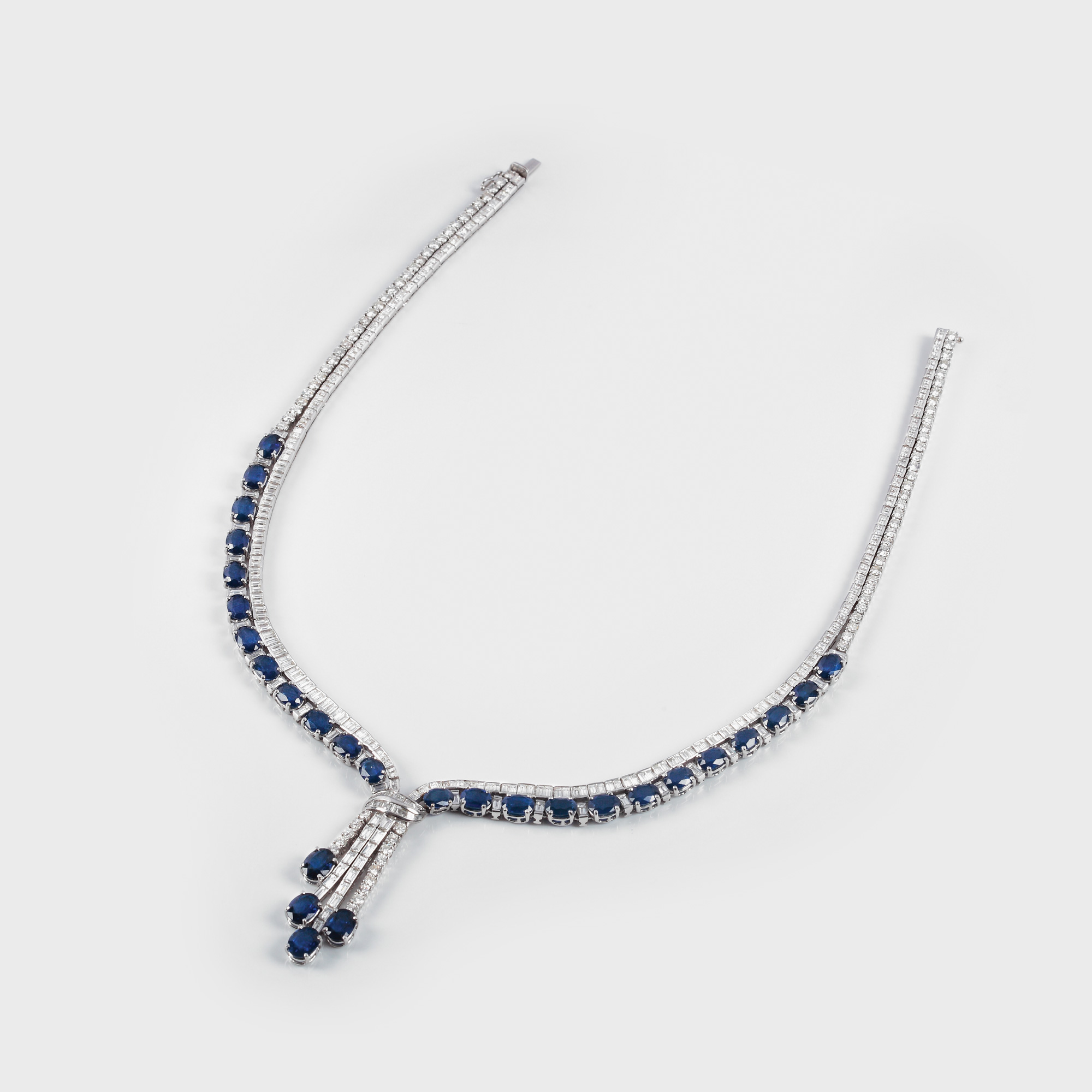 27. Prețios colier de gală, din aur alb, decorat cu safire și diamante [sec. XX]