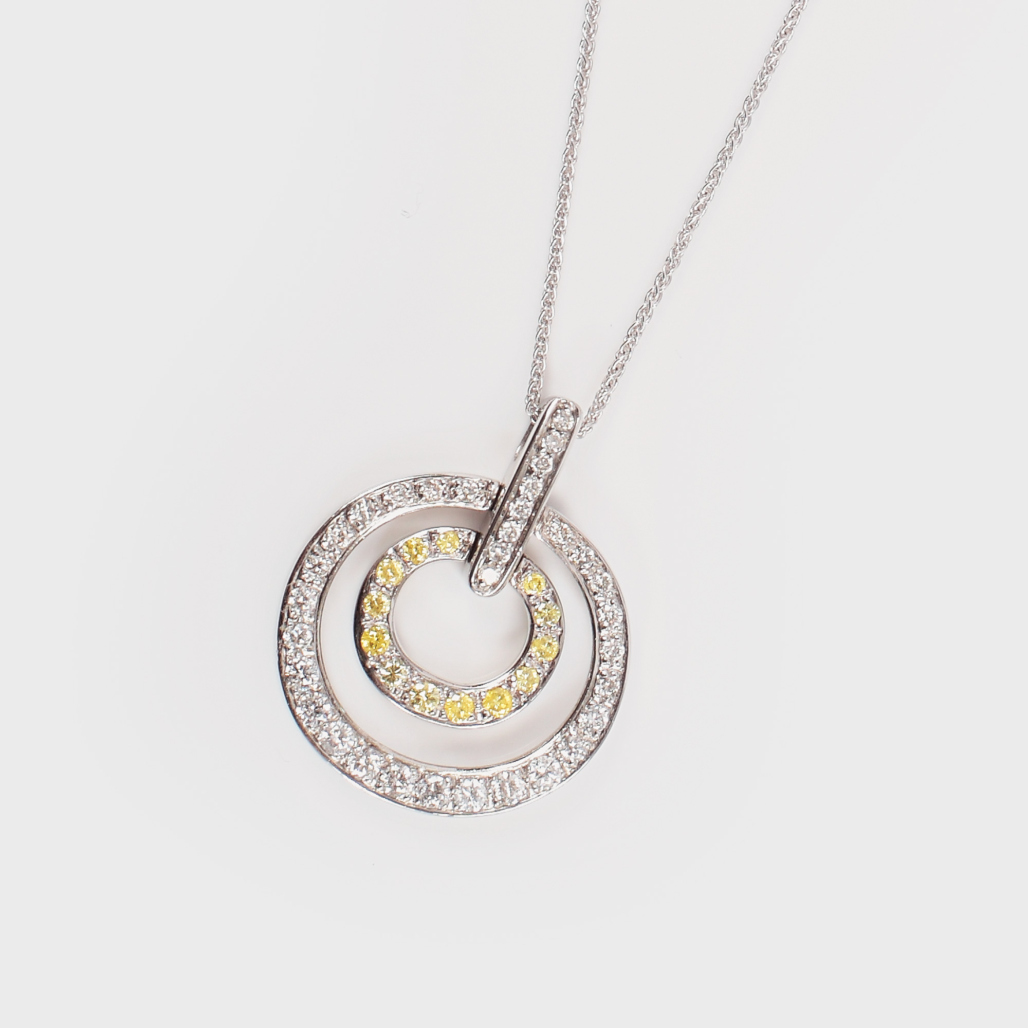 29. Pandantiv din aur alb, decorat cu diamante albe și galbene [sec. XX]