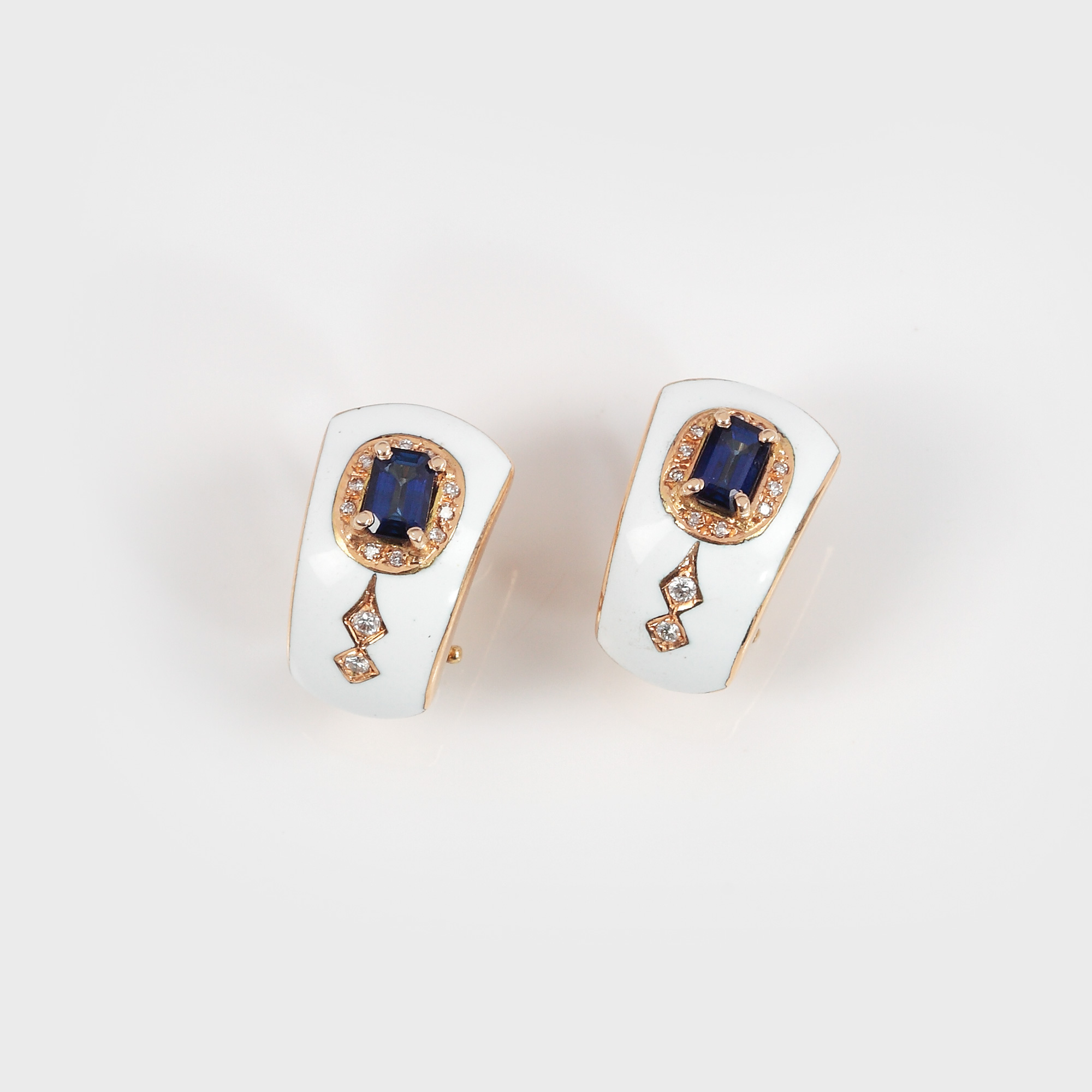 32. Pereche de cercei din aur și email, decorați cu diamante și safire [sec. XX]