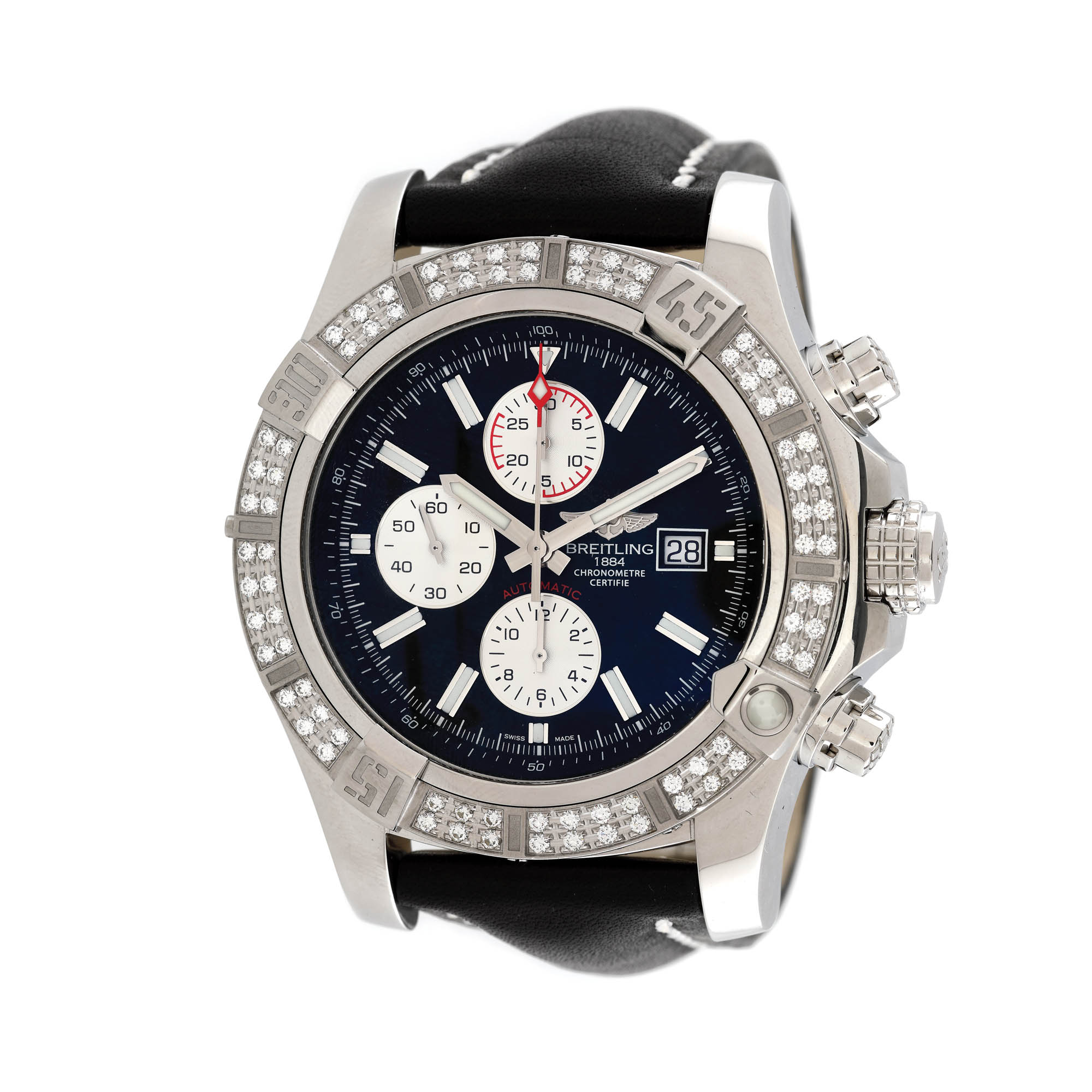 18. Ceas Breitling Super Avenger II, cu bezelul decorat cu diamante, de mână, bărbătesc
