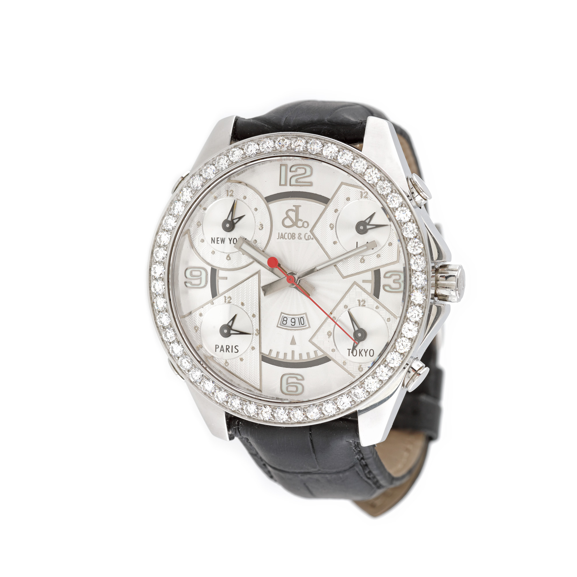19. Ceas Jacob & Co Five Time Zone, de mână, unisex, cu bezelul decorat cu diamante