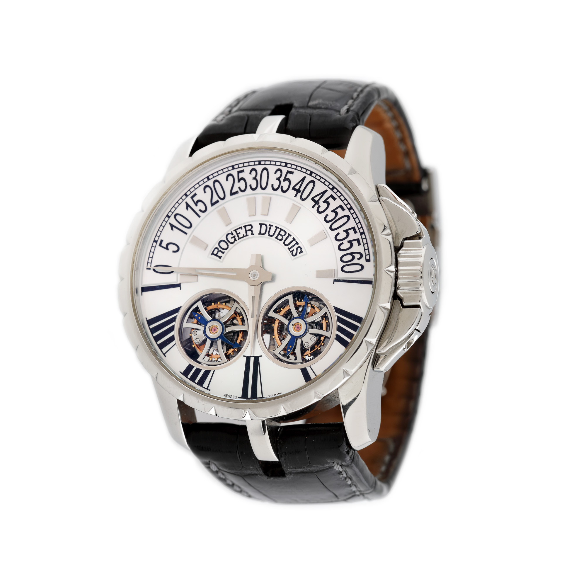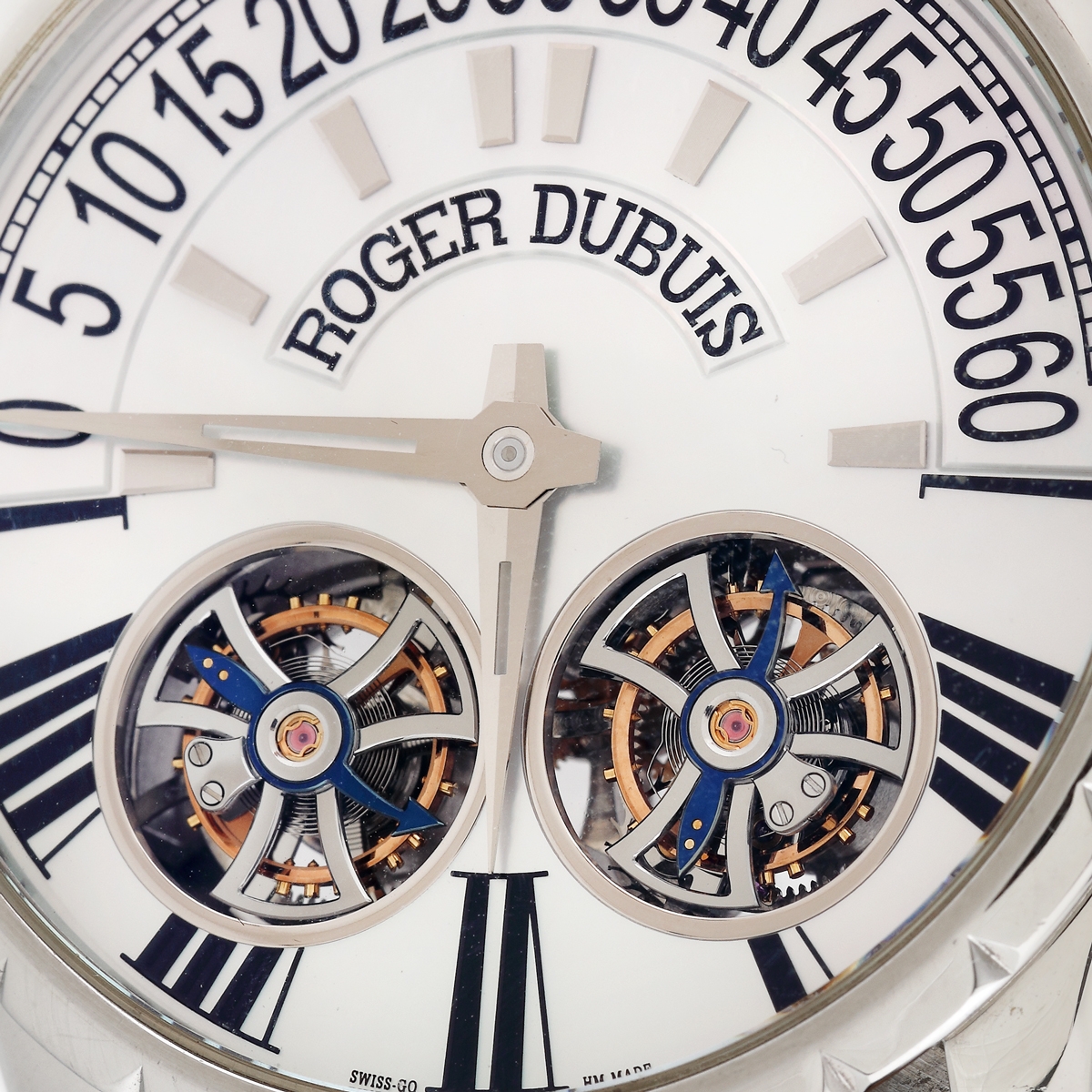 45. Ceas Roger Dubuis Excalibur Double Tourbillon Retrograde, de mână, bărbătesc, vine însoțit de actele de proveniență și cutia originală