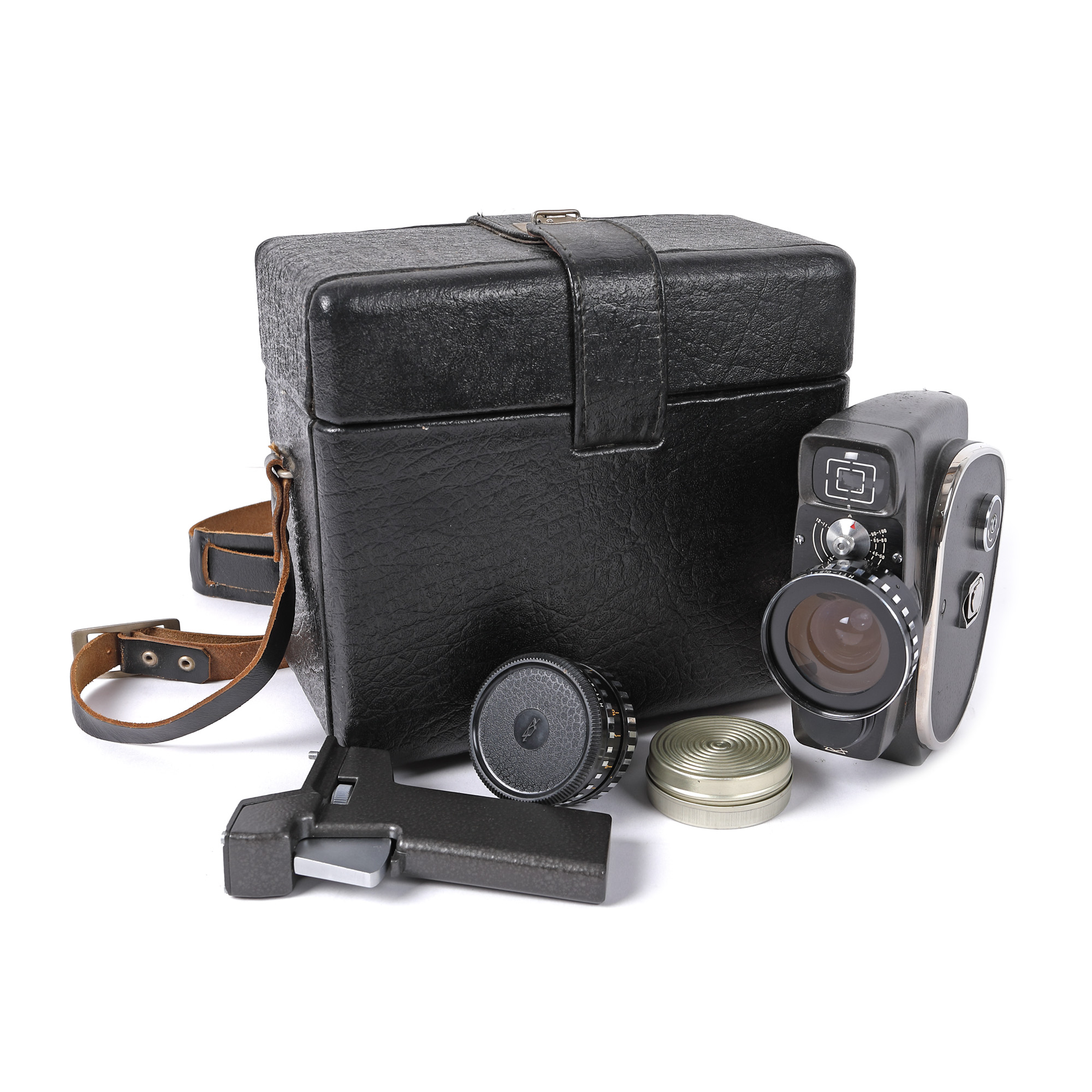 39. Cameră de filmat sovietică Quarz, pentru film de 8 mm, U.R.S.S., anii 1980, cu accesorii, în cutia originală